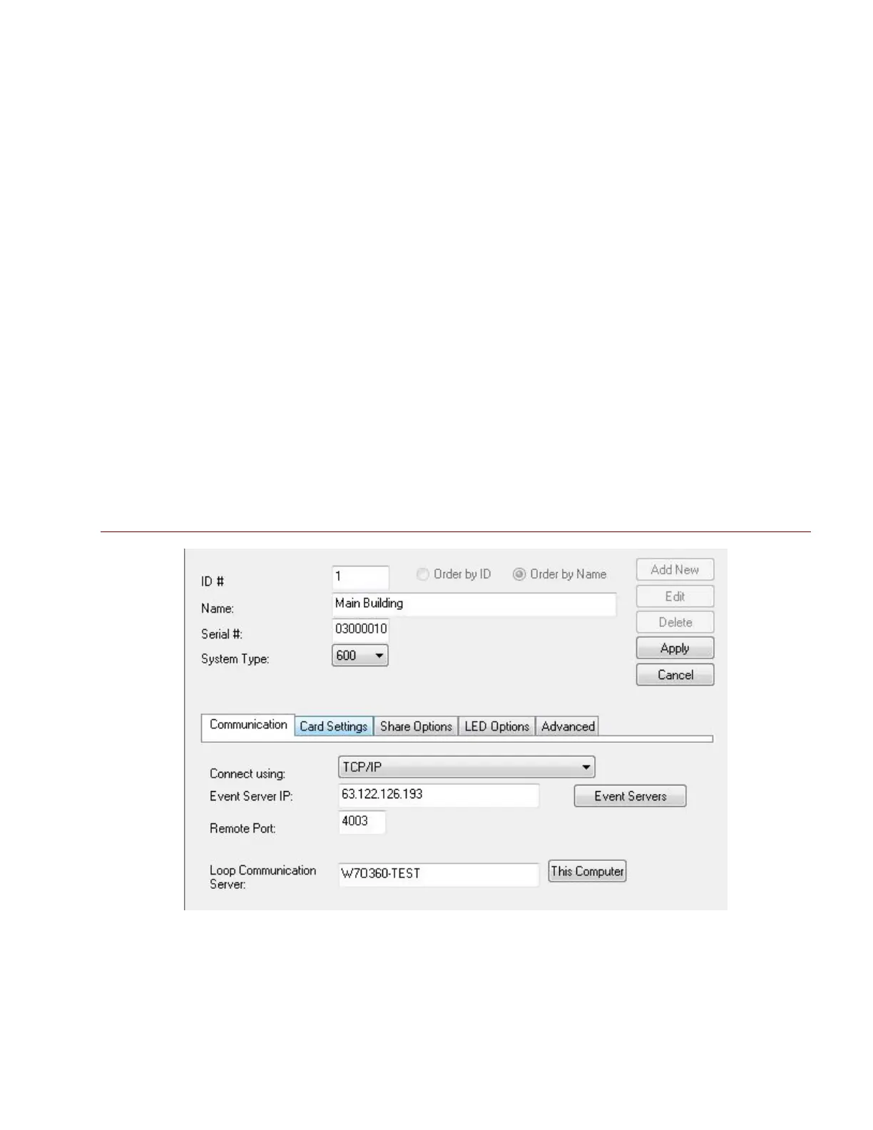 Enter the IP address of the Event Server (the PC running the GCS Event Service)