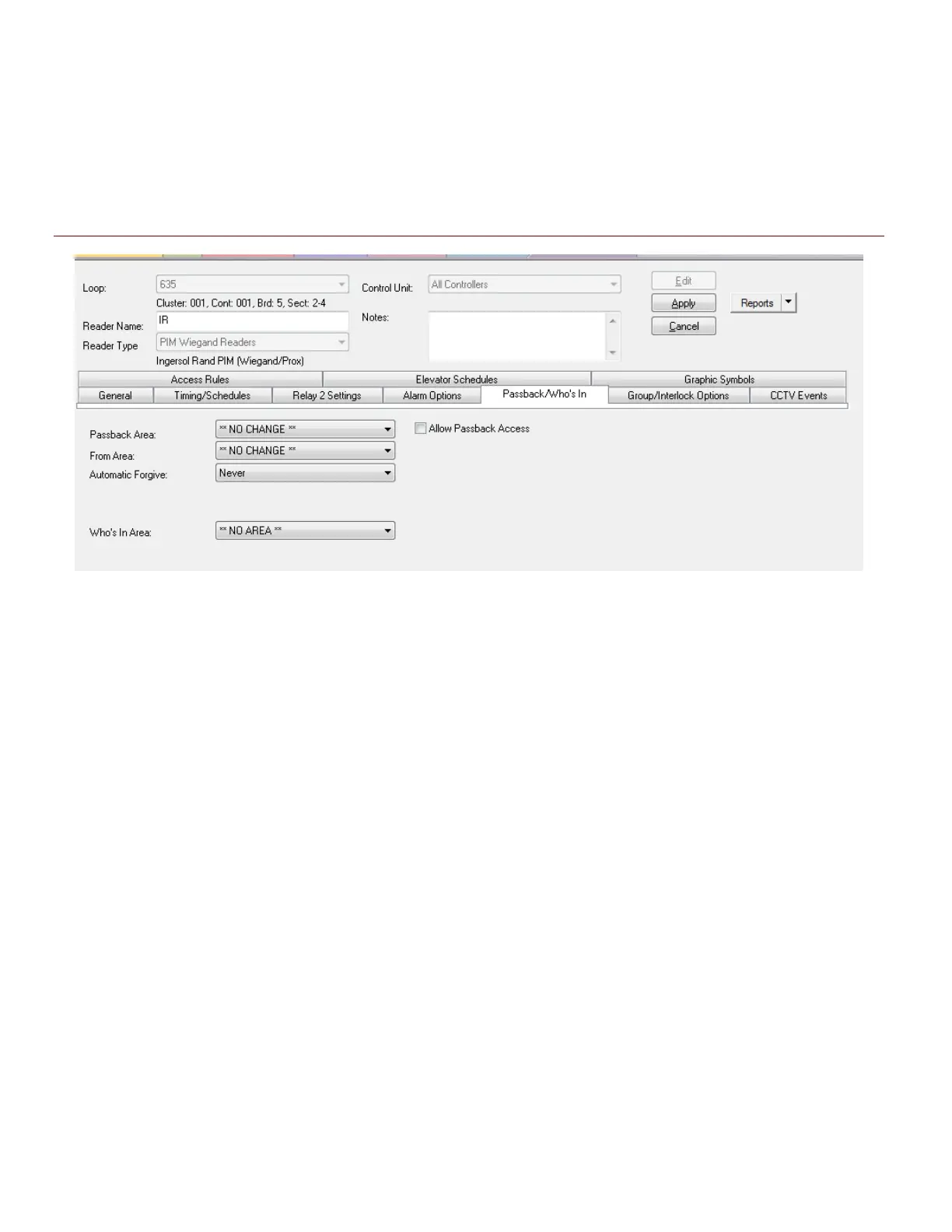 Figure 20 – Reader Properties: Configuring the Passback/Who’s In