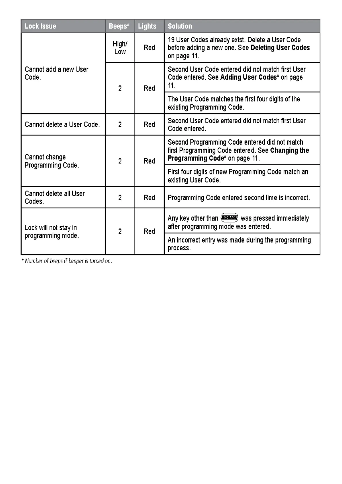 before beginning! Default Programming and User Codes will be restored. All existing User Codes and current