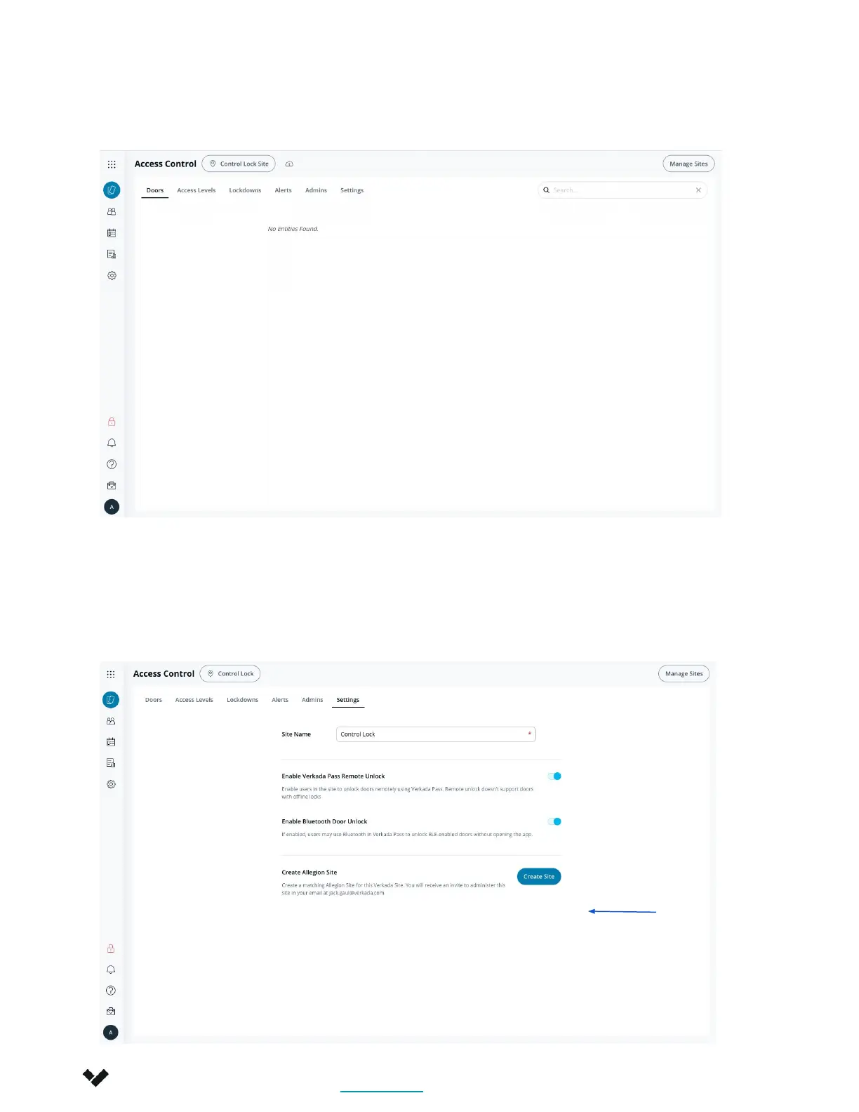 with the user. YOU MUST USE THE SITE THAT VERKADA CREATES IN ENGAGE. Not