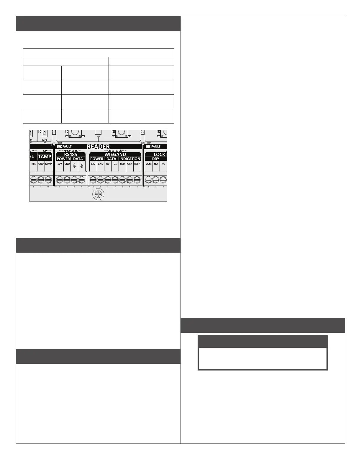Connexions du lecteur : RS485 vers mise à la terre. Situé dans le
