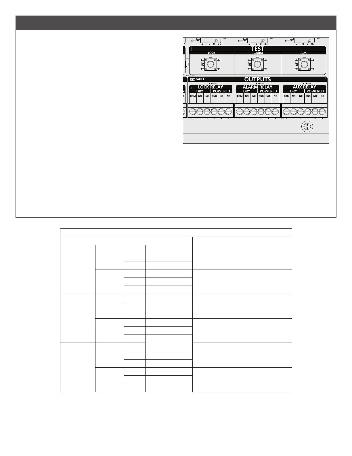 CTE has three (3) relay outputs, lock, auxiliary, and alarm. They are