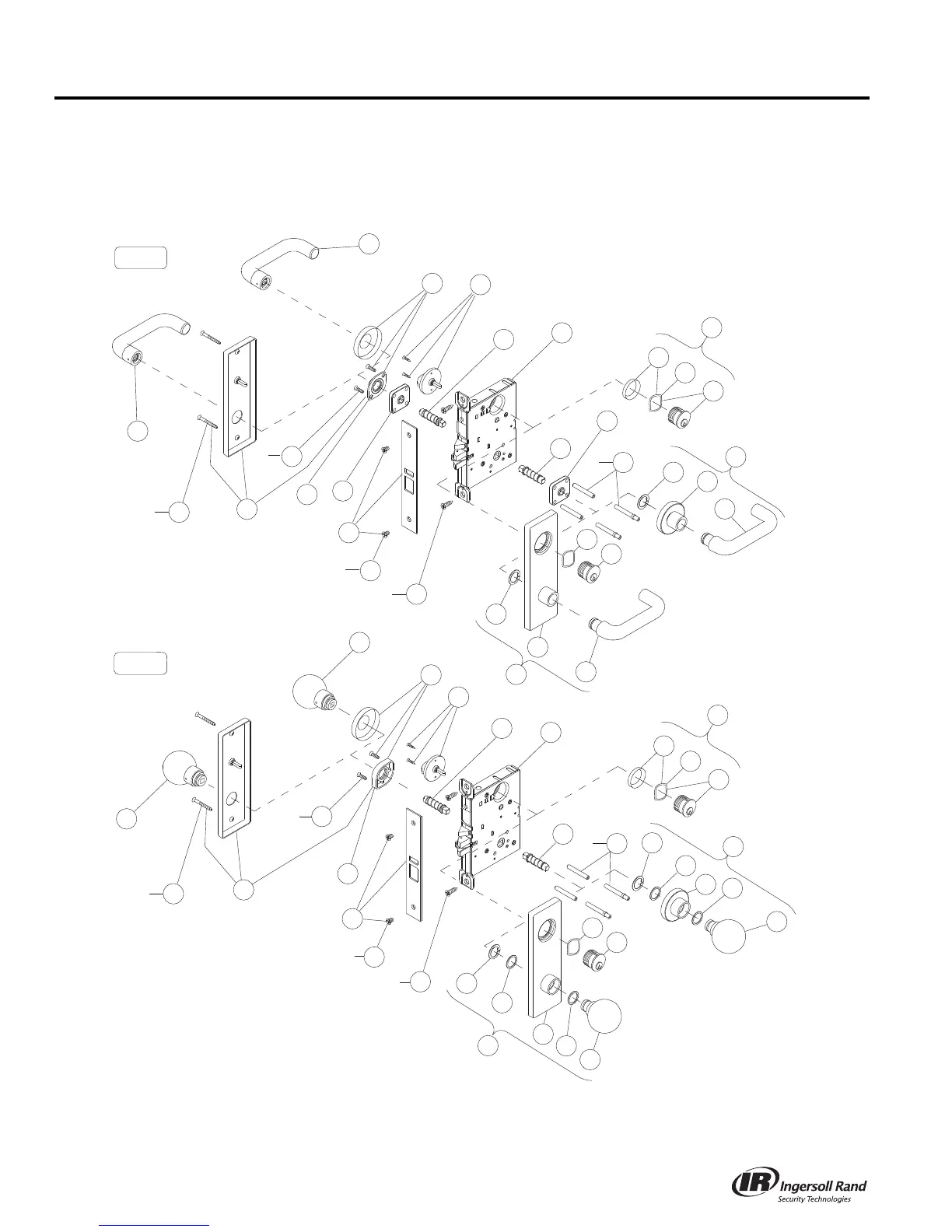 * Actual lock function has a latch and deadbolt. Lock case and armor front shown with latch and auxiliary latch.