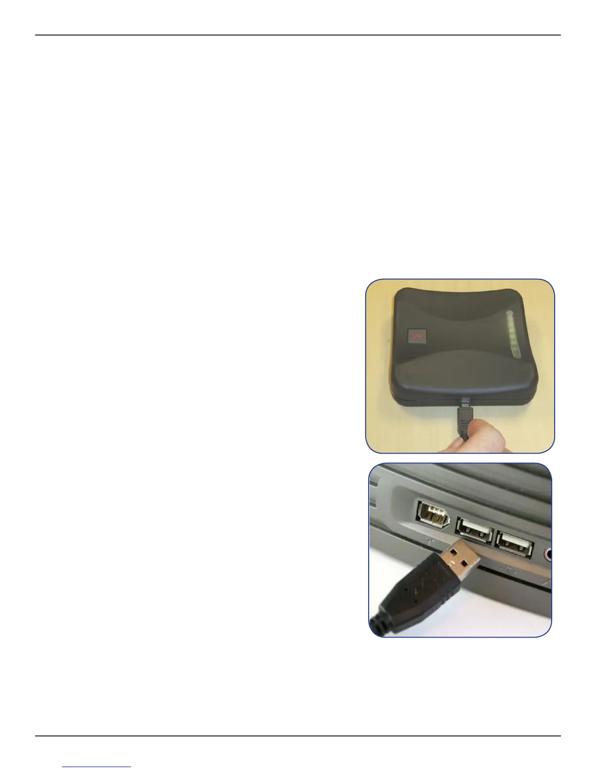1. Plug the mini-B side of the USB cable into the Desktop Reader/