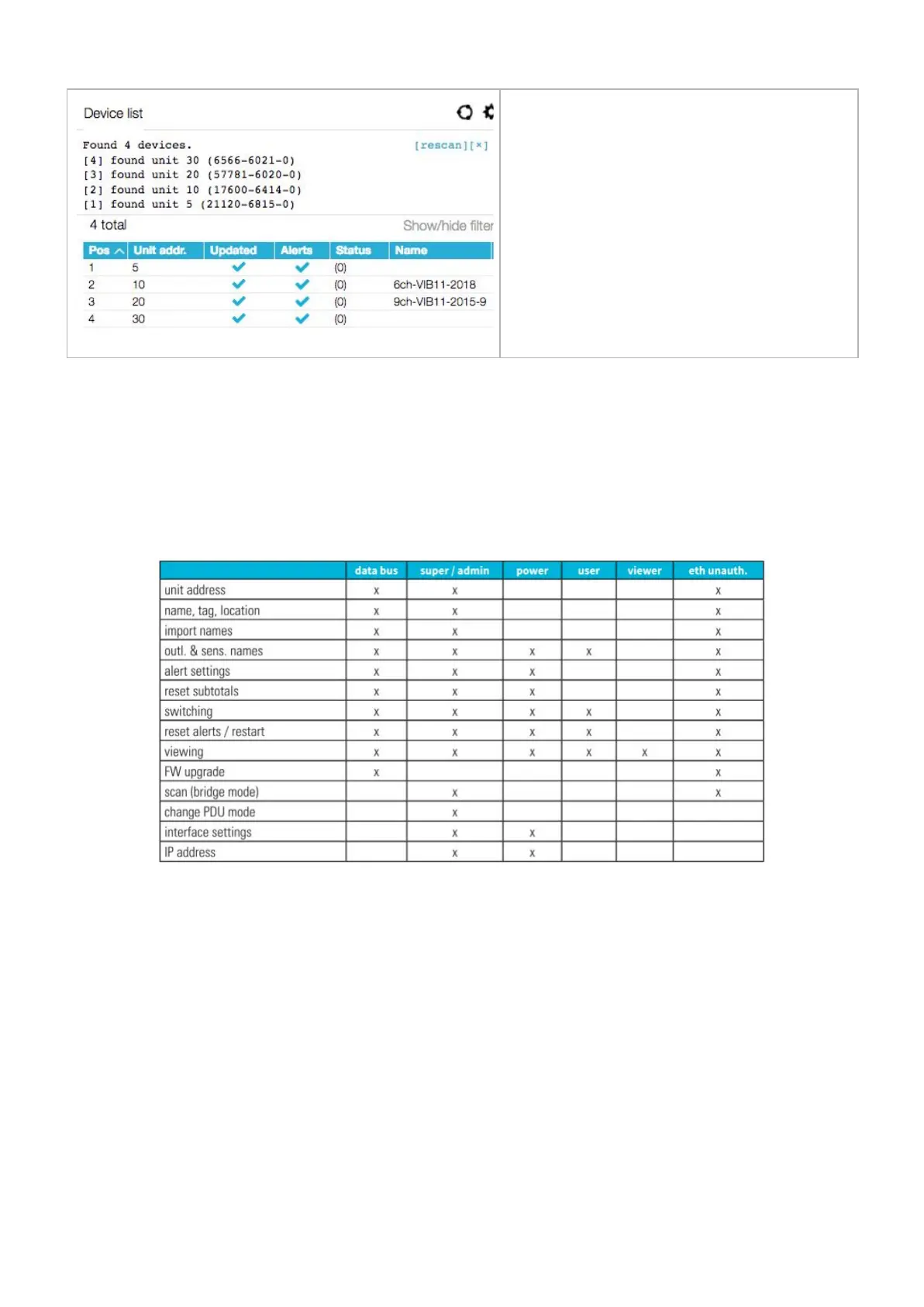 The PDU user authentication model provides 5 different accounts which can be used to access the web interface and
