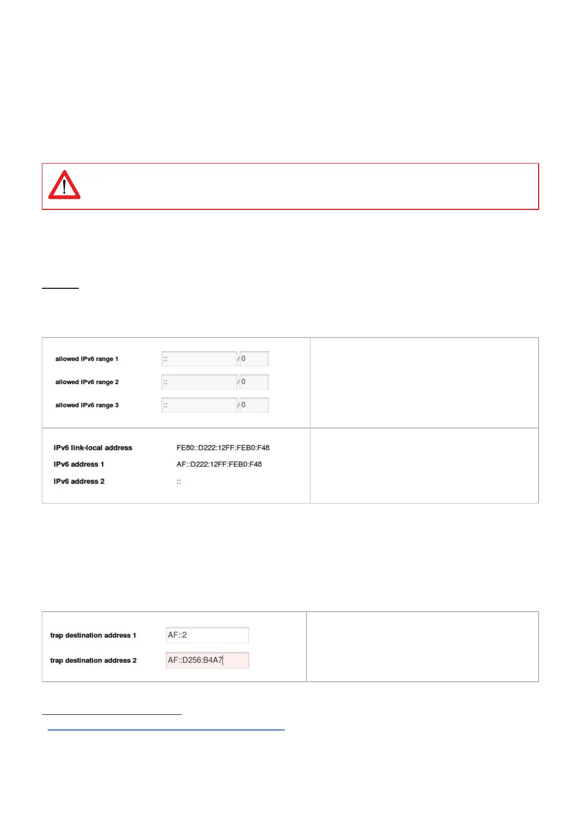 fields can be set to any destination including an IPv4 address (when IPv4 is enabled) and an IPv6 address.