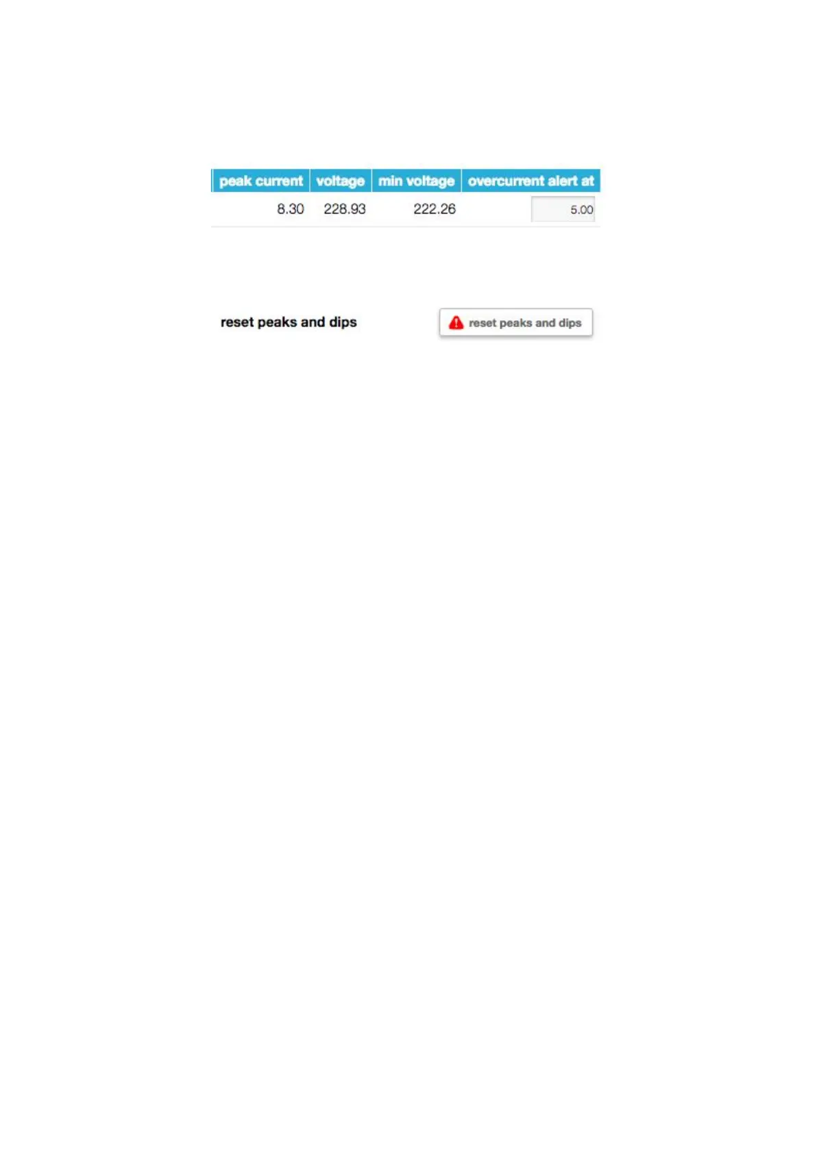 Example: you have set the “overcurrent alert at” on 5.00A in the < input > tab. At a certain moment you see an alert in the