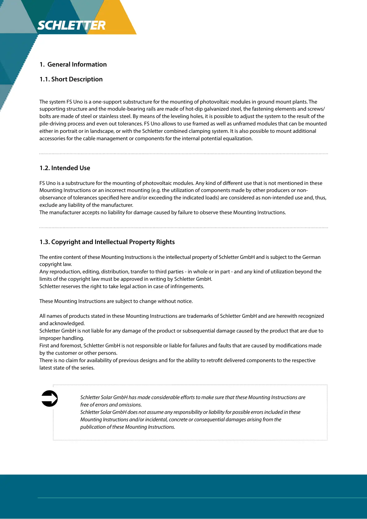 Schletter Solar GmbH has made considerable efforts to make sure that these Mounting Instructions are