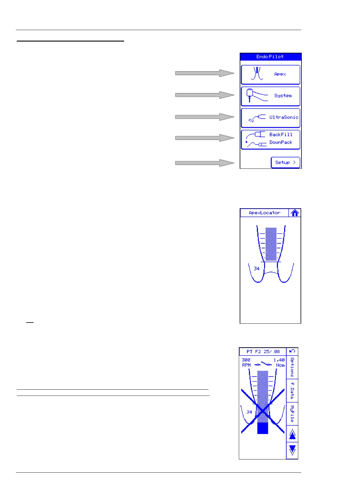 In this menu, you can probe the canal manually, that means by a file lead by hand.