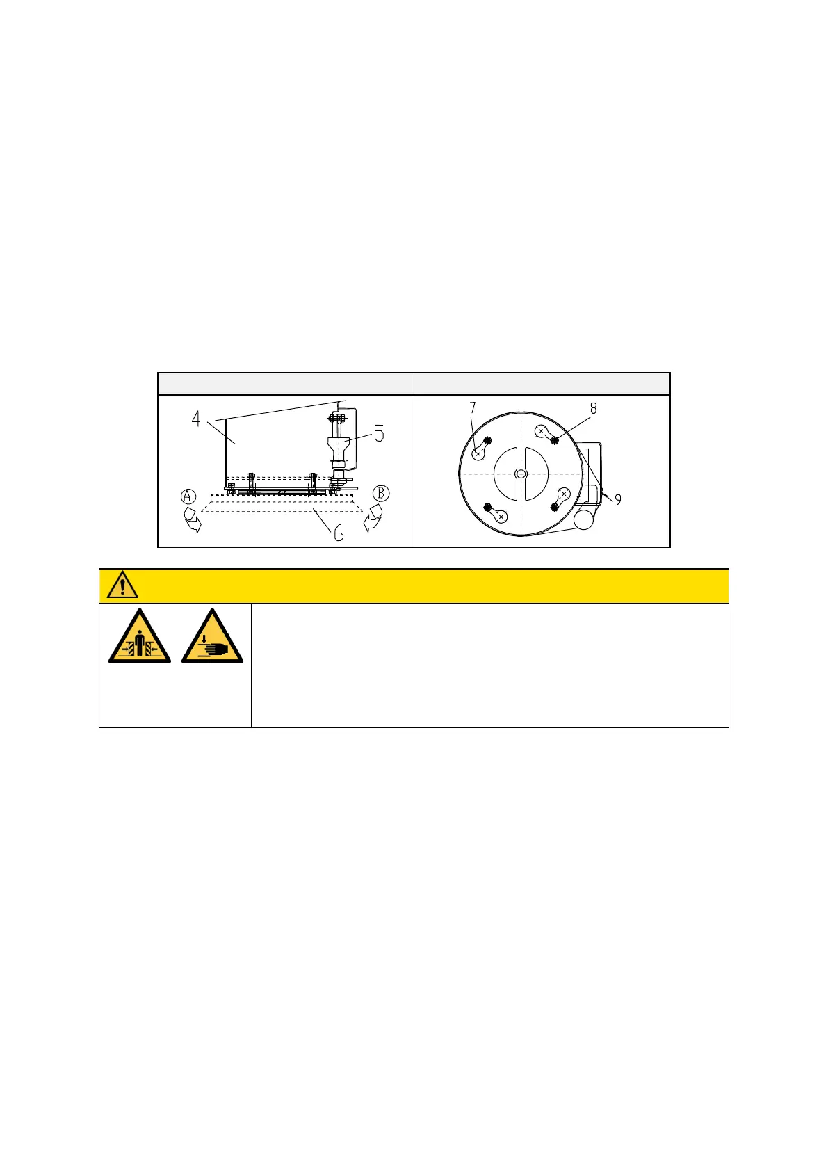 3. Rotate the suction pads (6) in direction B until the suction pad suspension bolts (8) are positioned
