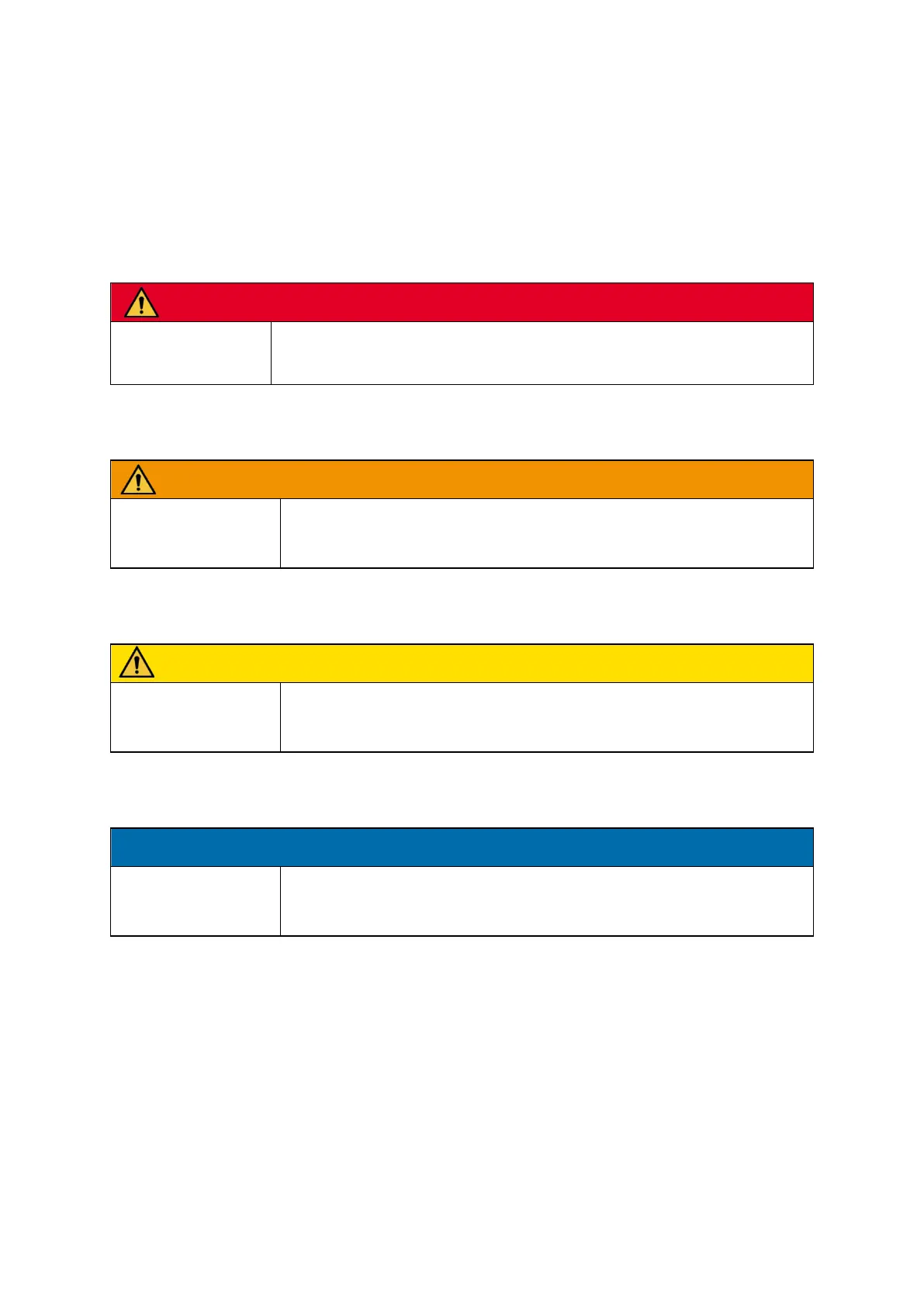 This warning informs the user of a risk that will result in death or serious injury if it is not avoided.