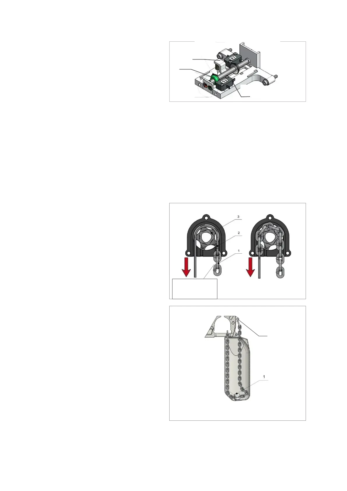 2. Pull in the chain (1) using short switching