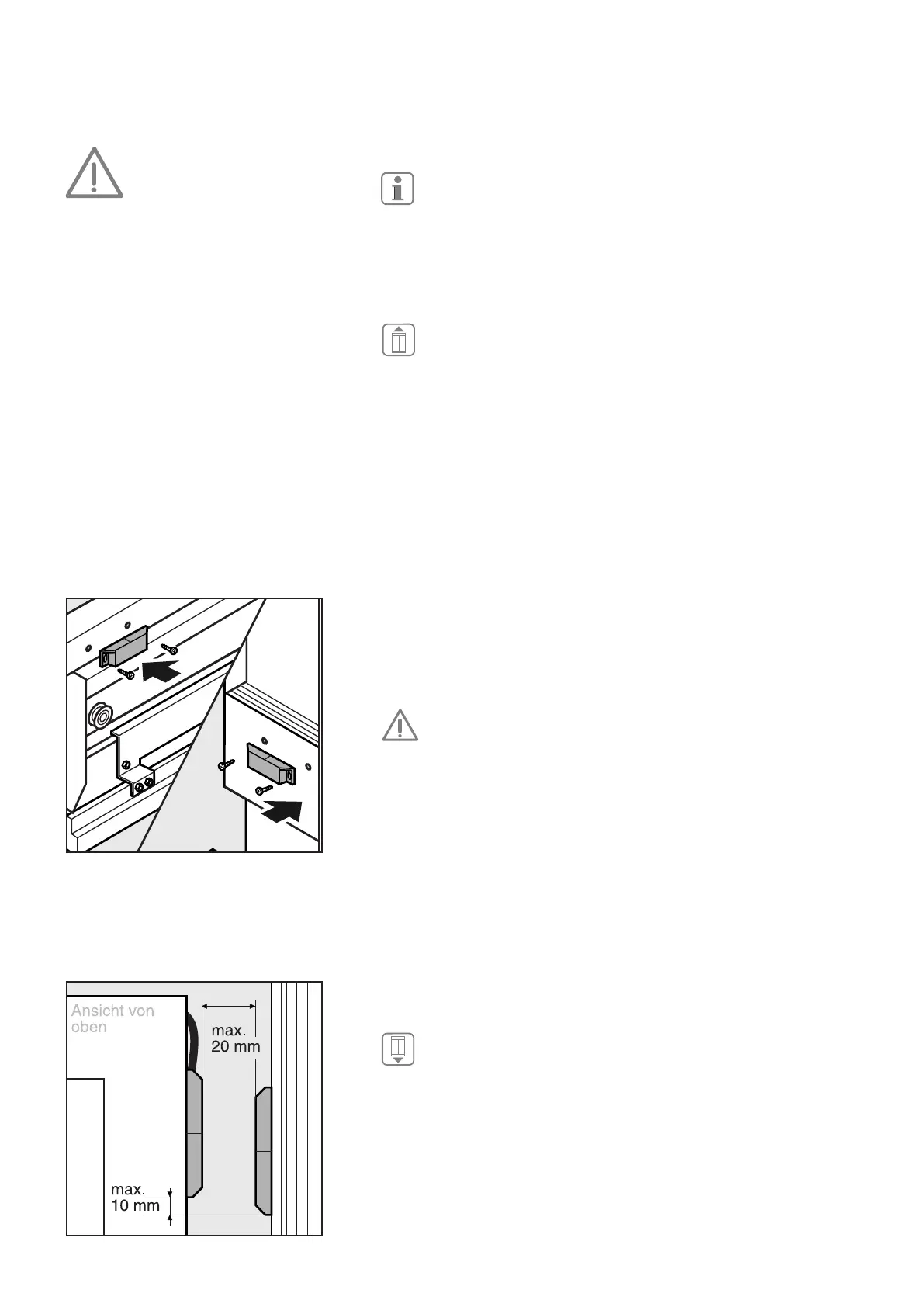 maximaler horizontaler Abstand von 20 mm zwischen Korrek-