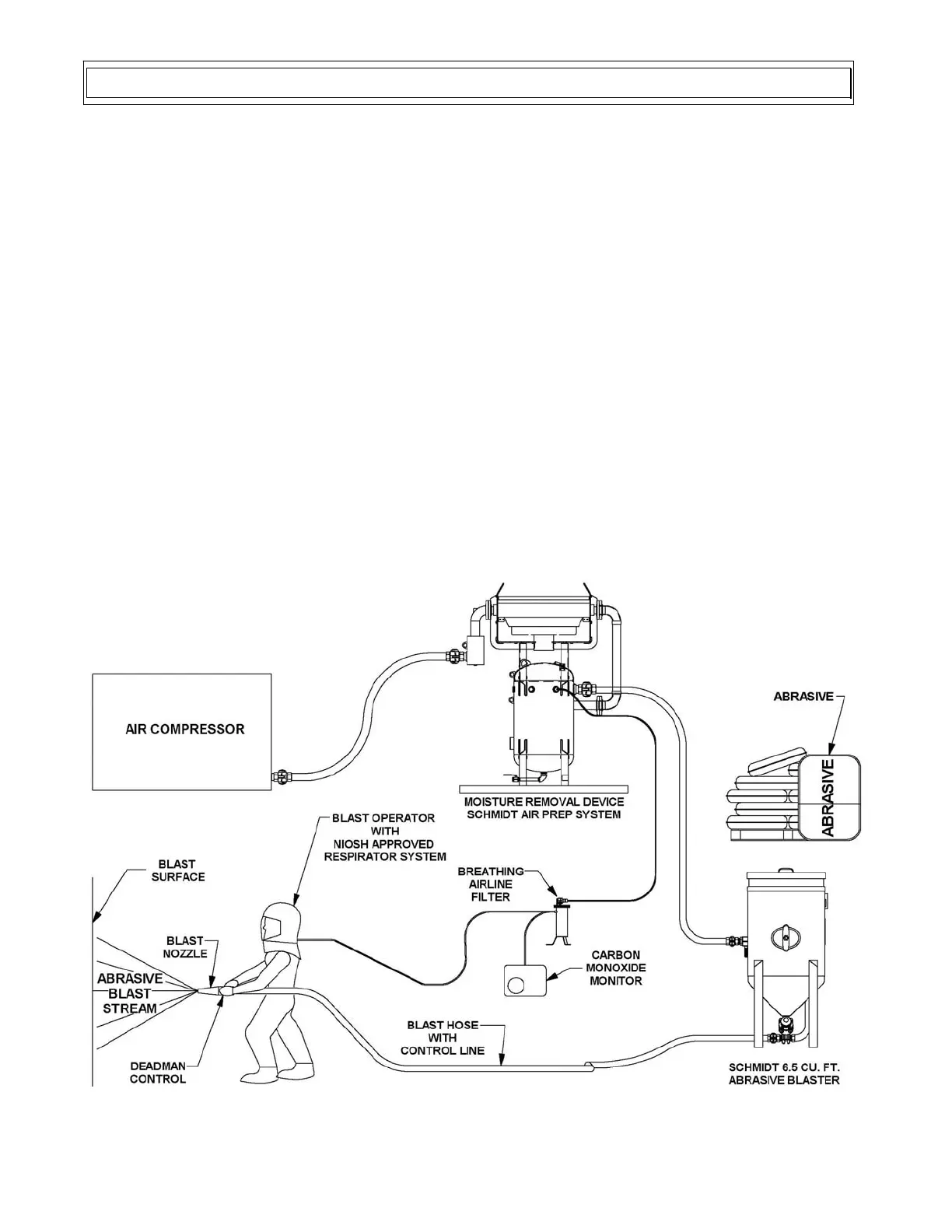 components are an air compressor, moisture removal device, an abrasive blaster, blast hose, a blast nozzle,