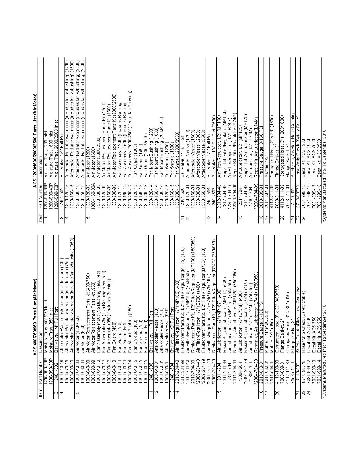 9.2(b) Parts List ACS 400-2500 Aftercooler System (Air Motor)