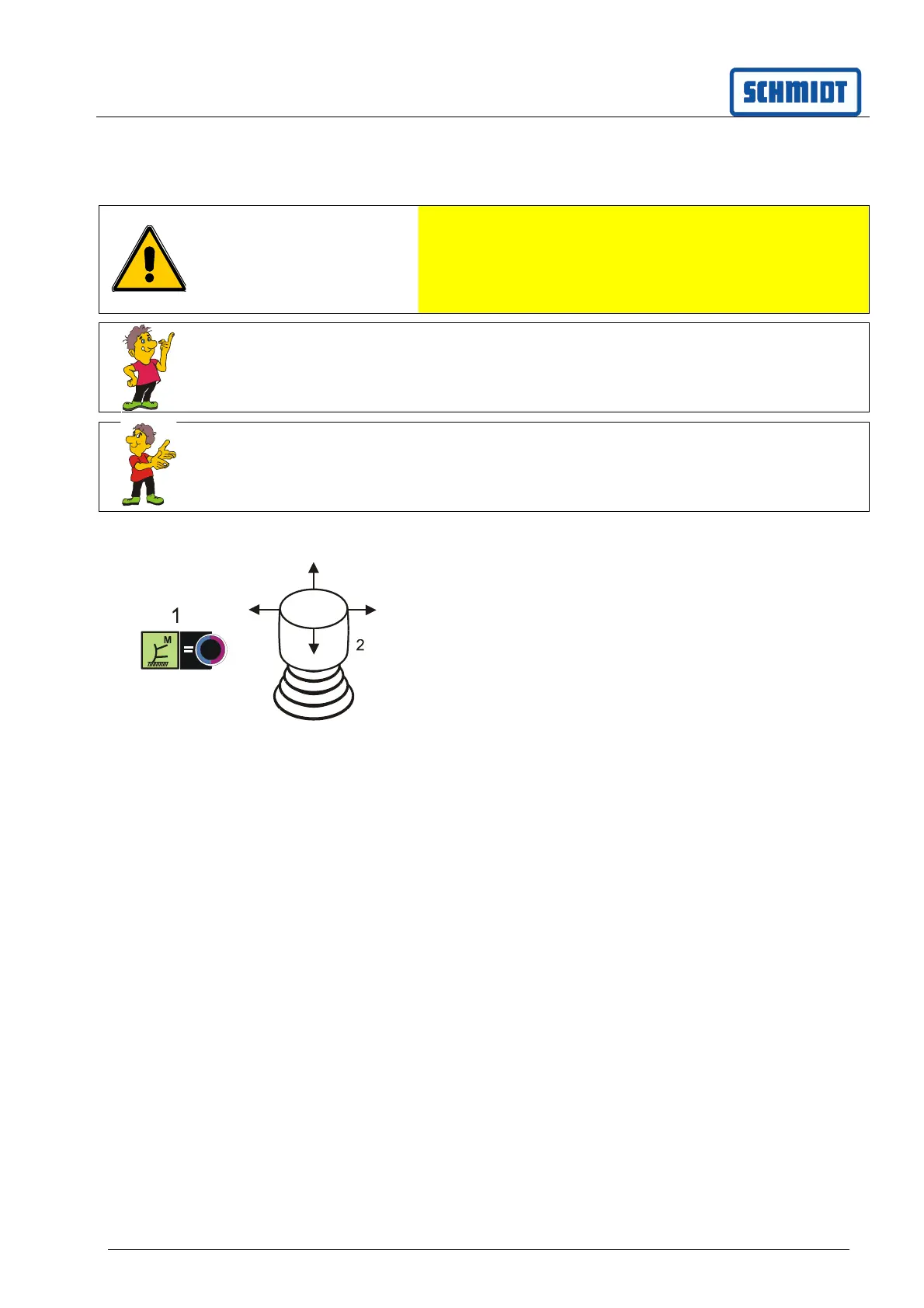 (raised/lowered and pivoted) with the joystick (2).