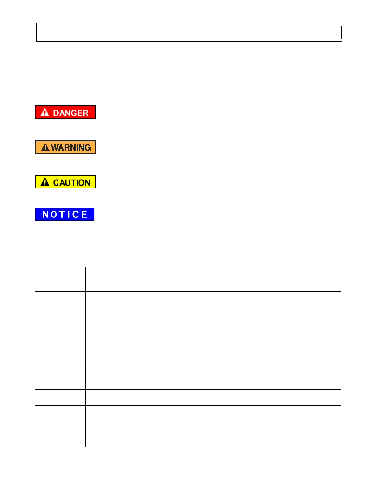 lower the risk of injury to personnel. Below are the three hazard levels as used in this manual.