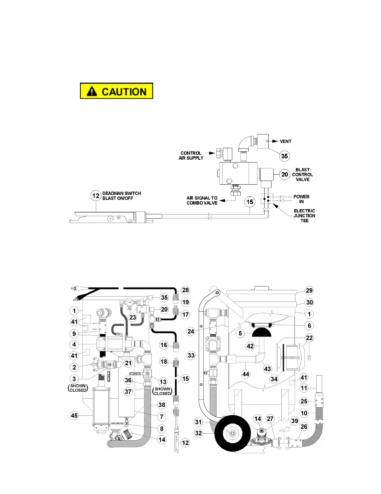 Figure 5.5 shows a MV3 Valve abrasive blaster with the electric deadman system. The popup