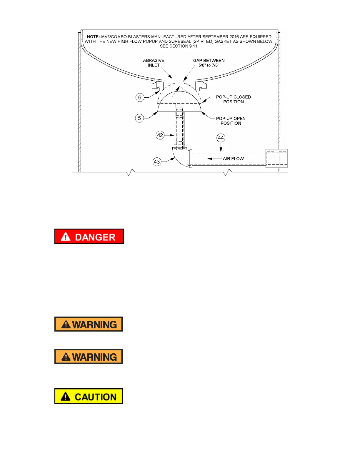 couplings, and the equipment, and properly install an earth ground to the abrasive blaster. See