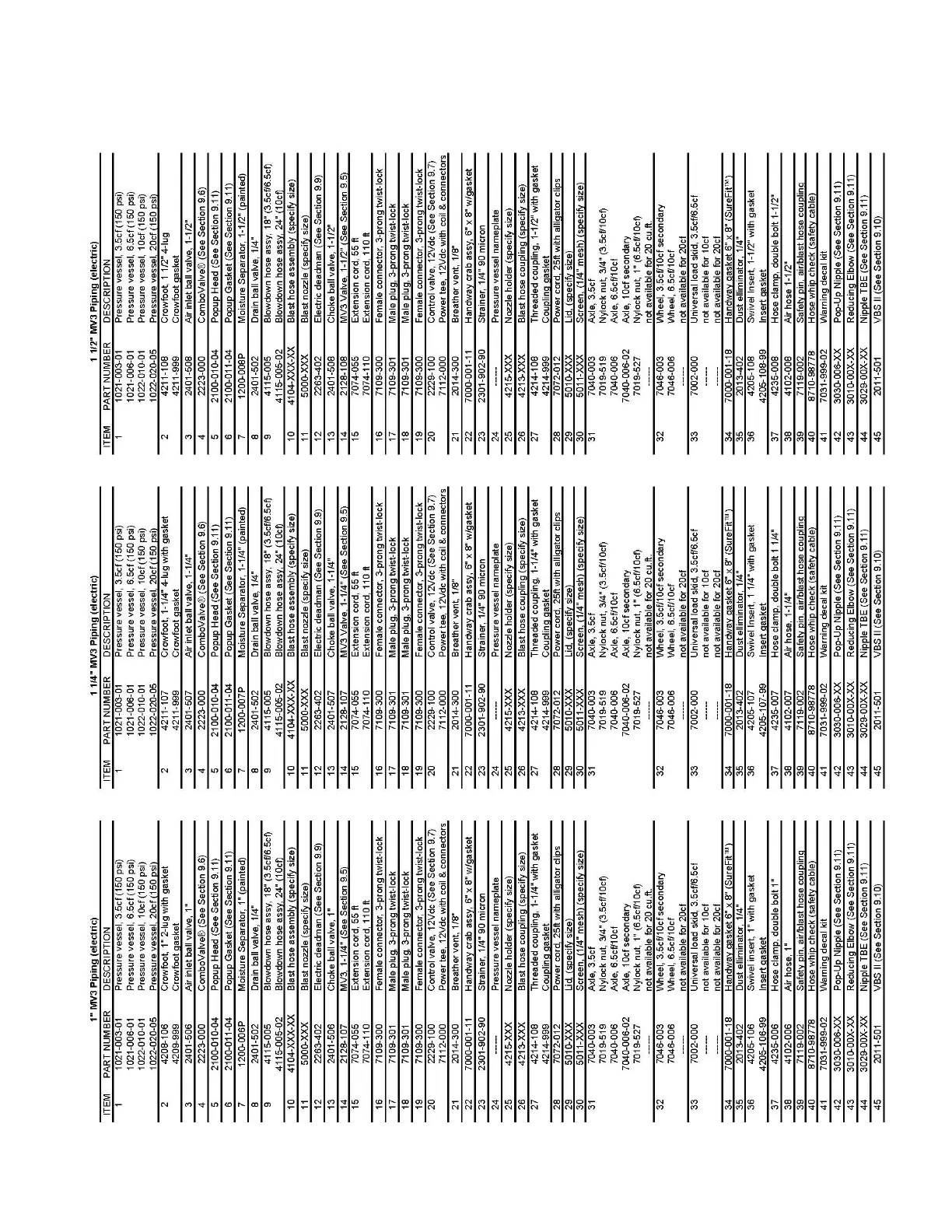 9.3(b) MV3 Valve Abrasive Blaster Electric Control Parts List (3.5 - 20 cu. ft.)