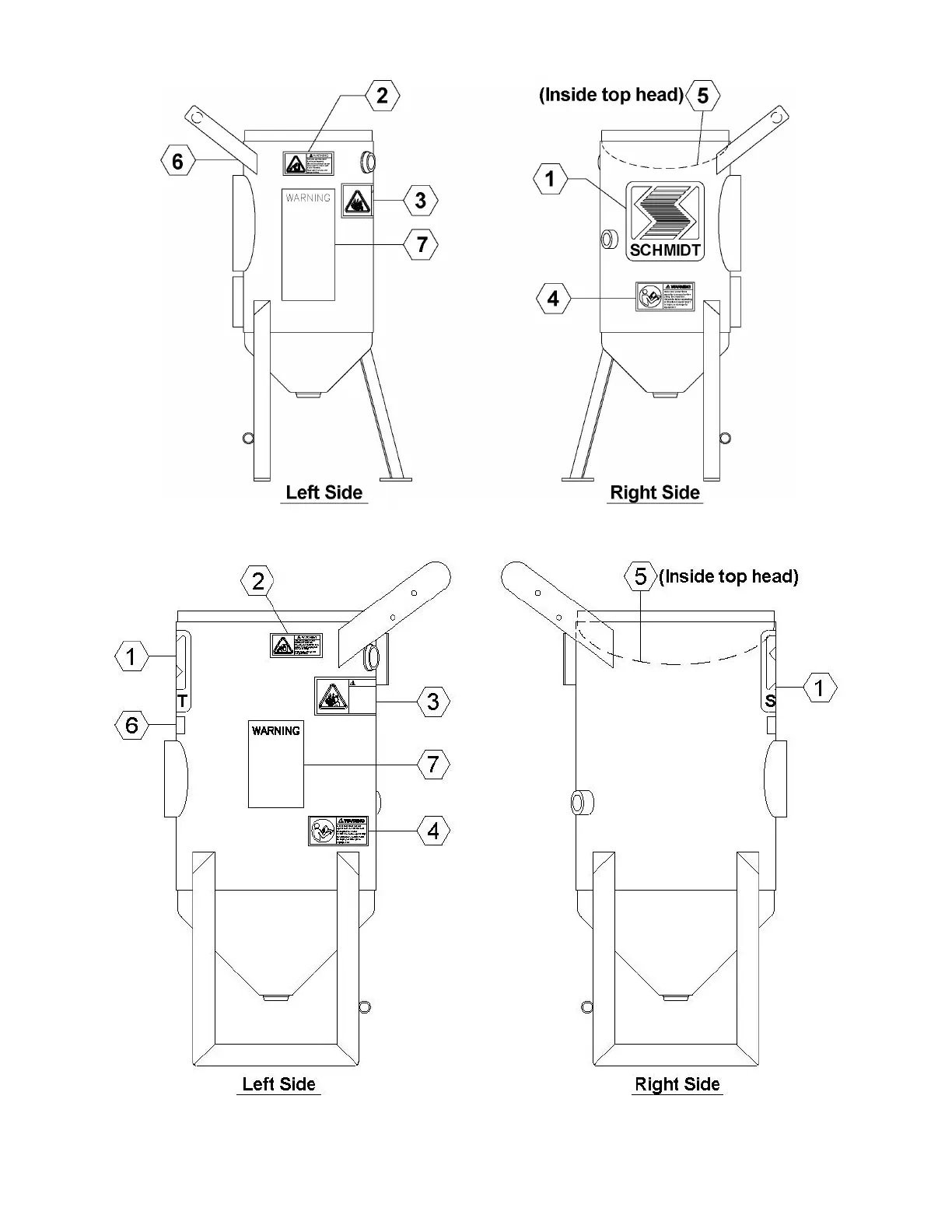 Figure 0.2(a) Warning decal placement (1.5 cu. ft.)