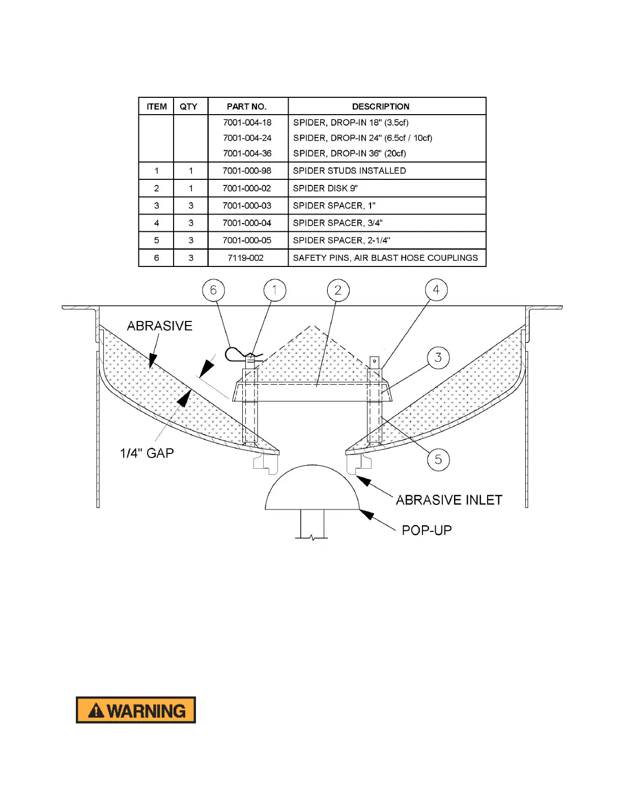 The optional abrasive spider is a device that is mounted in the top head of the abrasive blaster. The
