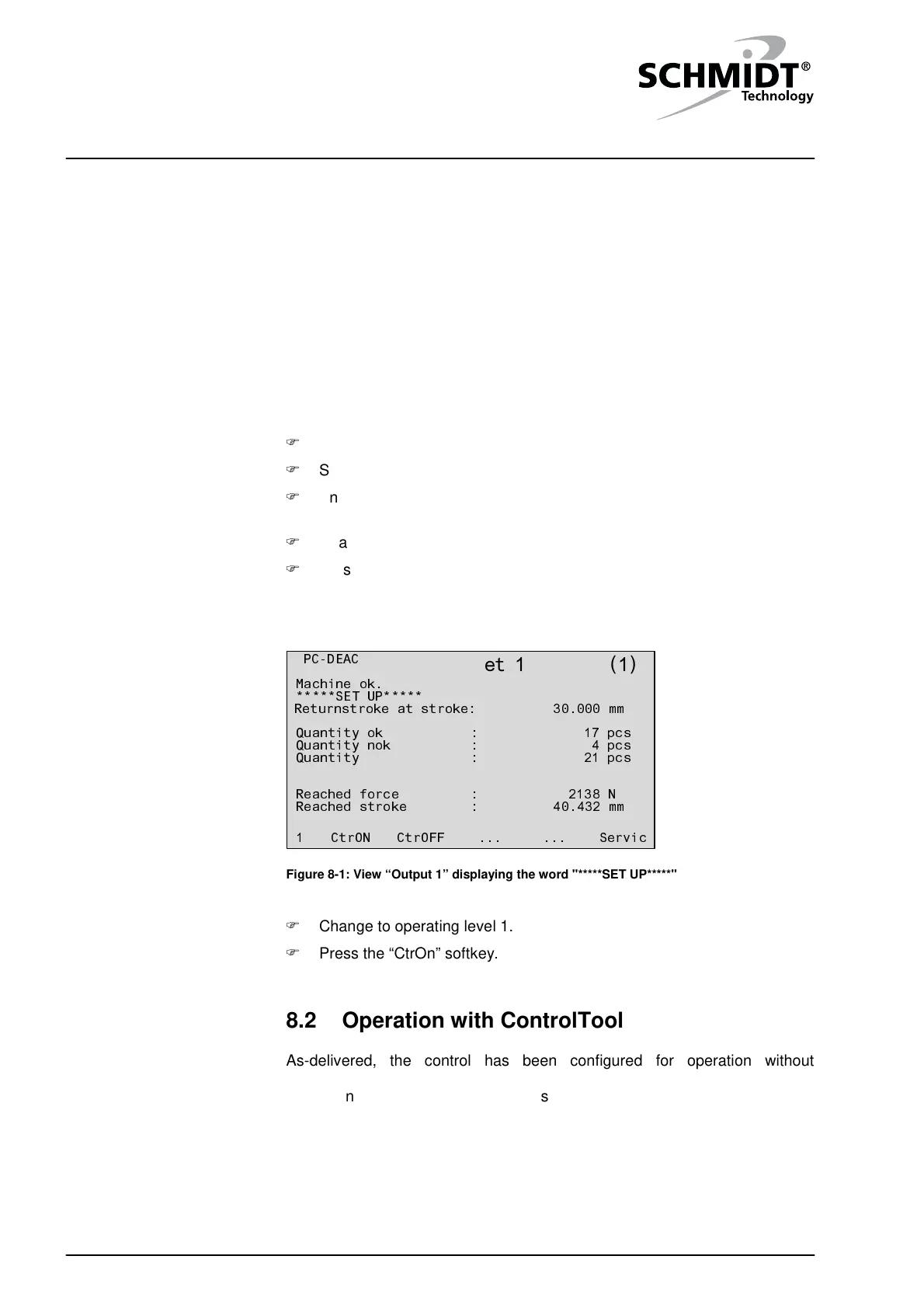Figure 8-1: View “Output 1” displaying the word "*****SET UP*****"