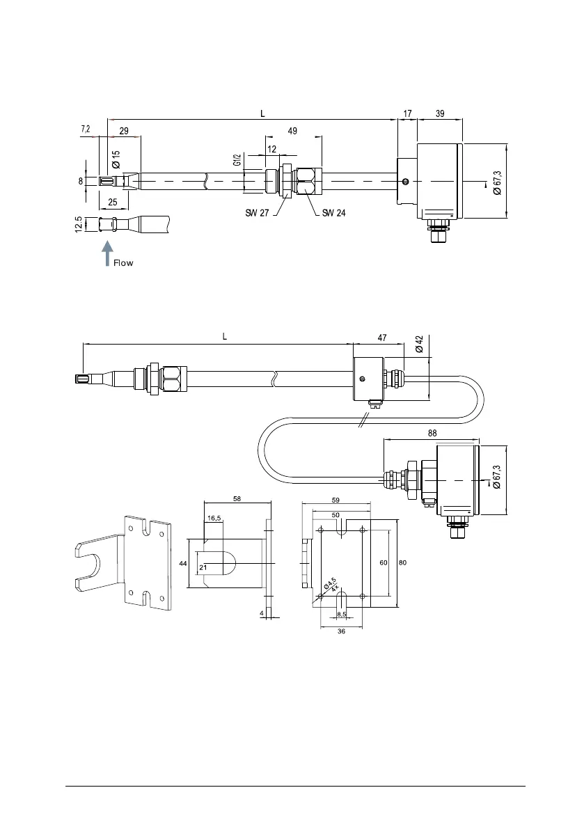 Schmidt SS 20.600 - Product Dimensions; Compact Sensor Dimensions; Remote Sensor and Bracket Dimensions