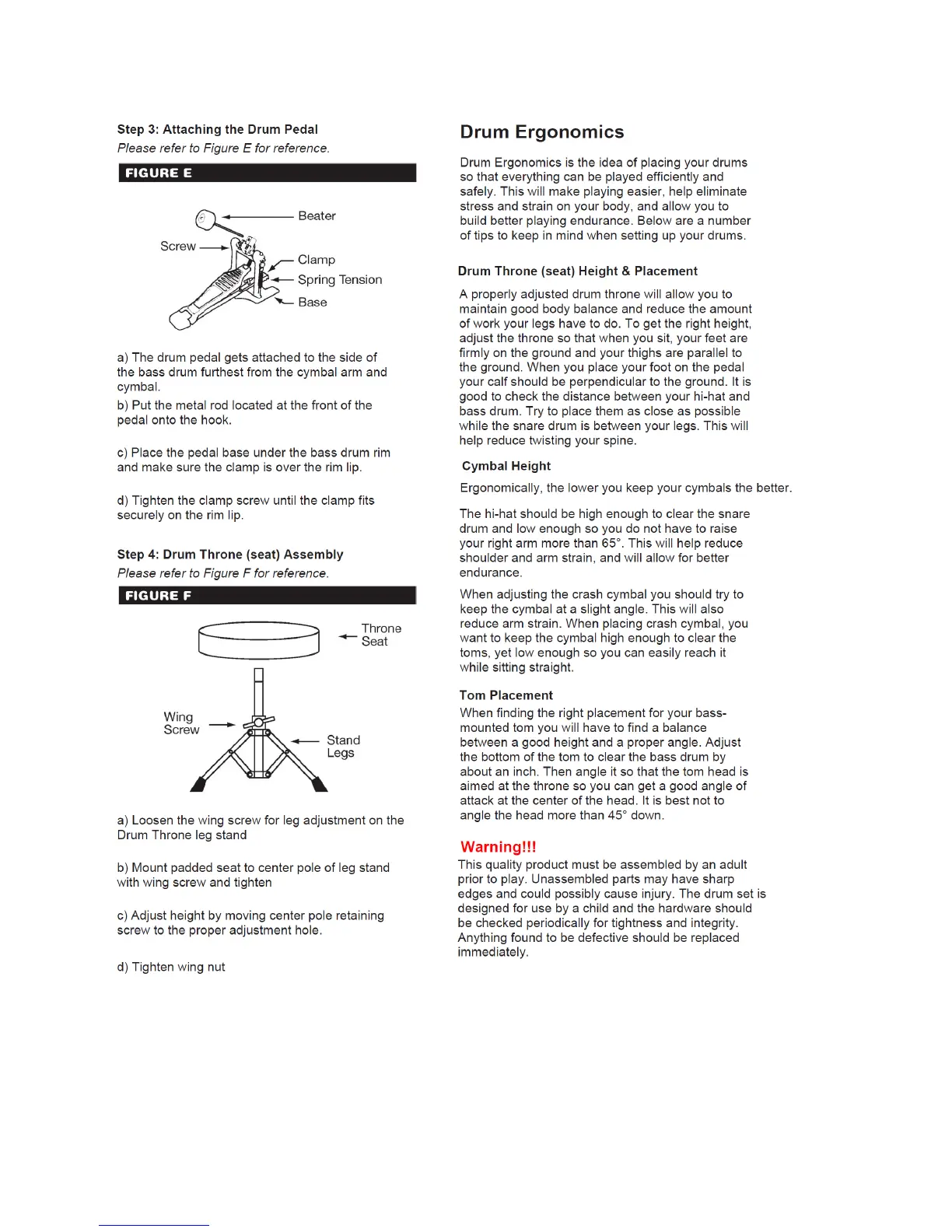 Schoenhut C1020 - Attaching the Drum Pedal; Drum Throne Assembly; Drum Ergonomics and Setup; Drum Ergonomics Principles