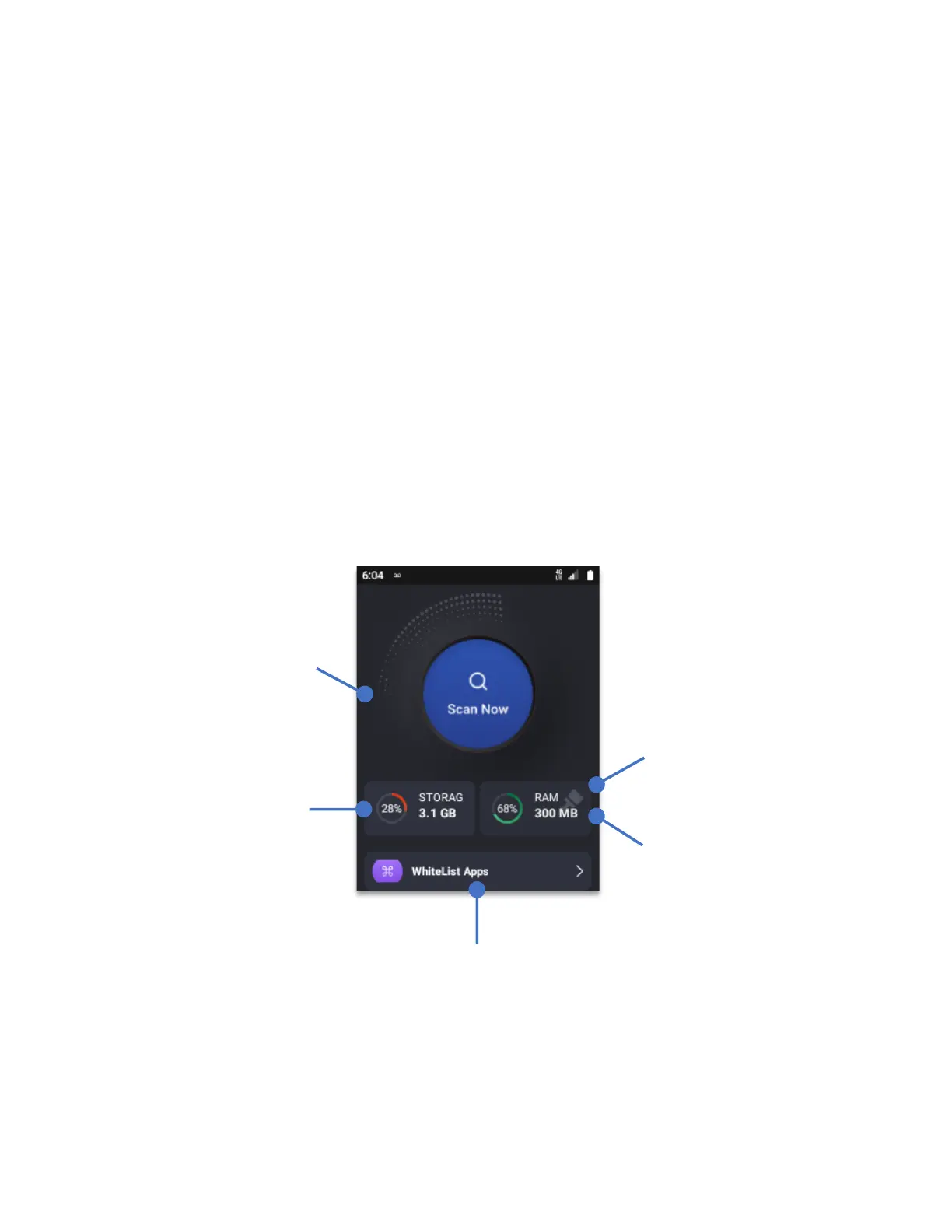 Will perform a search displaying the Cache, Apps and Junk files found on the