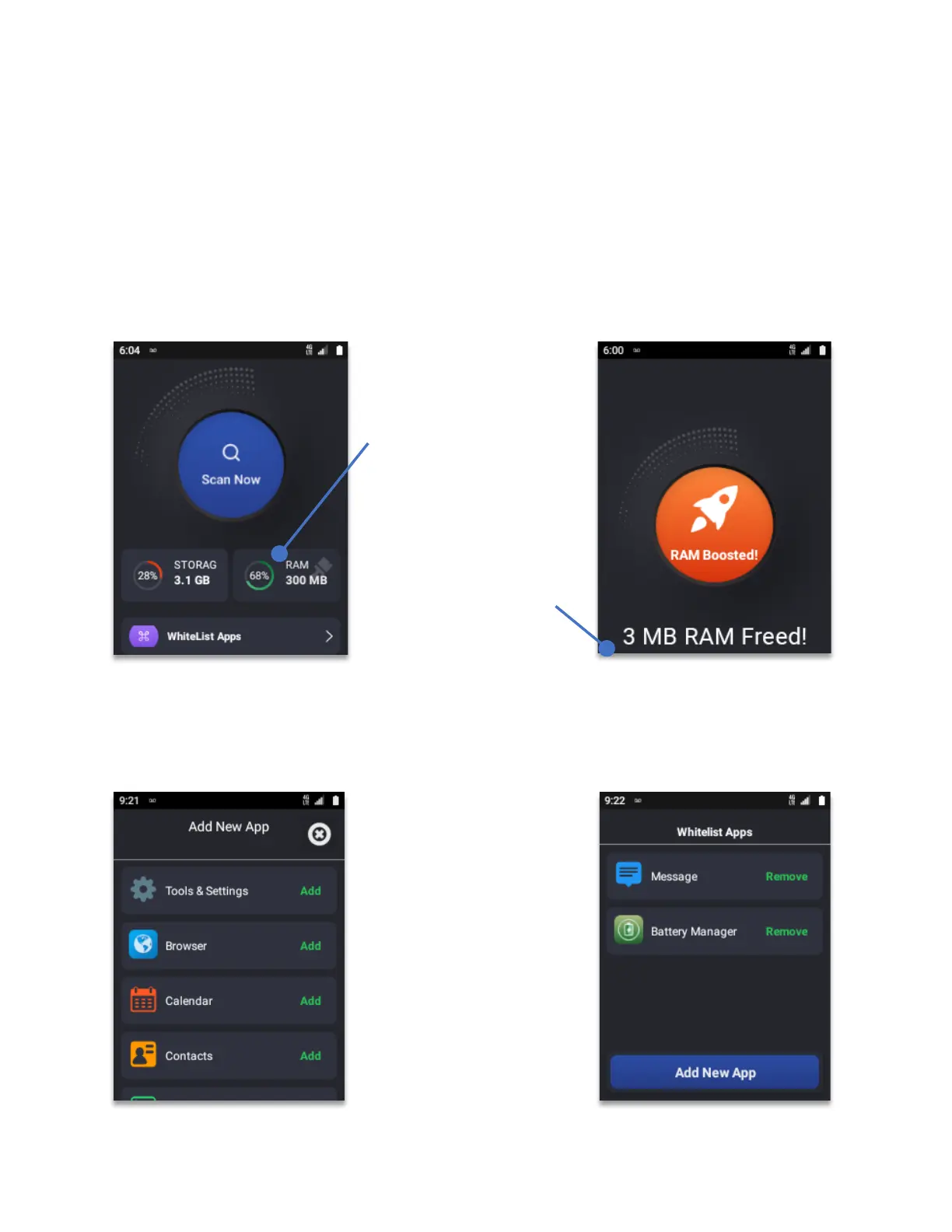 Power Boost has the ability to whitelist any application installed on the device. RAM cleanup
