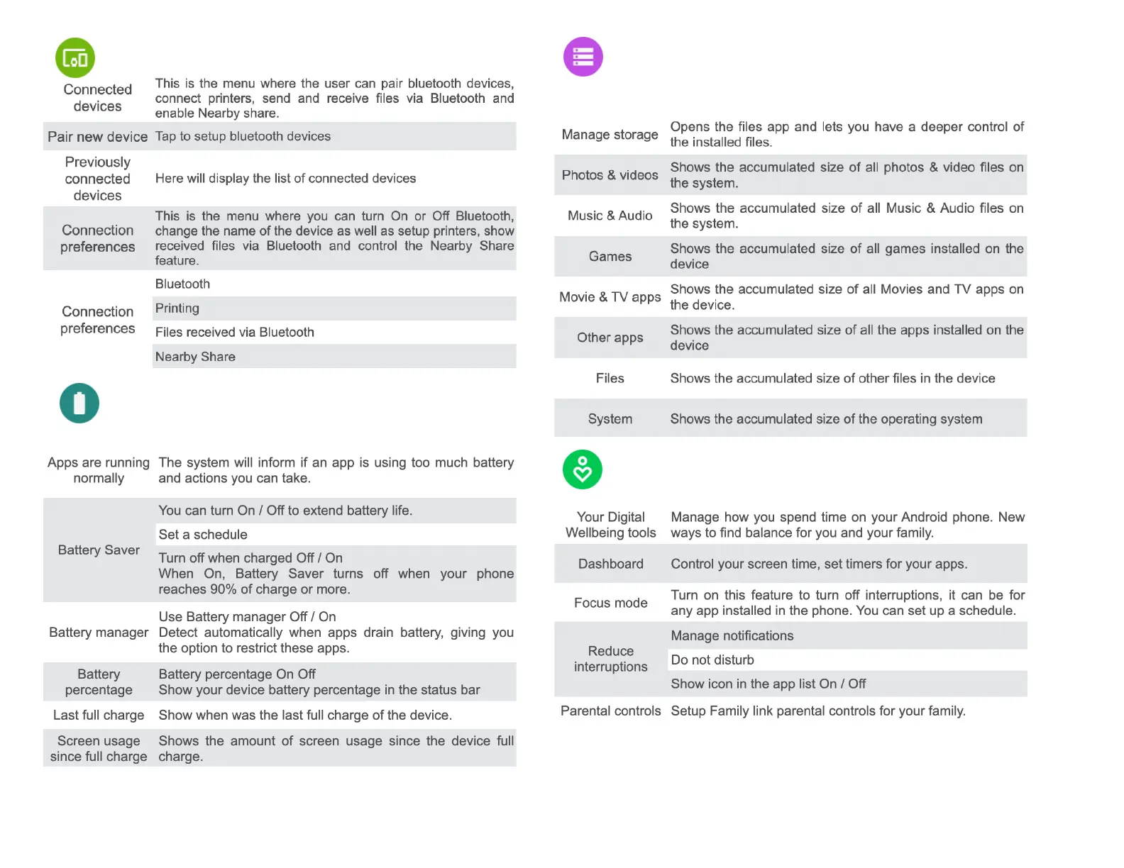 SCHOK Volt SV55 - Device Storage and Wellbeing; Connected Devices Management; Storage Space Overview; Digital Wellbeing Tools