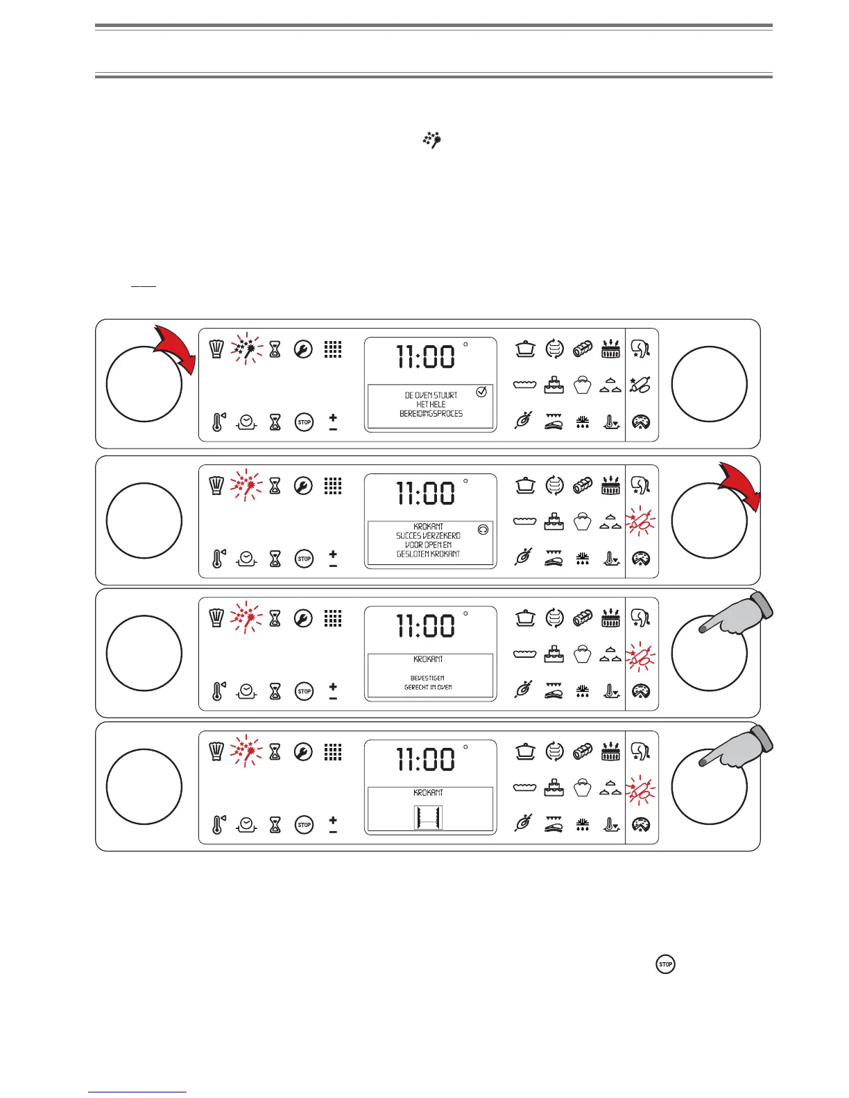 Voor "Pizza" en "Pizzeria" (zie blz.13) wordt het bevestigen gevraagd aan het einde van het voorverwarmen.