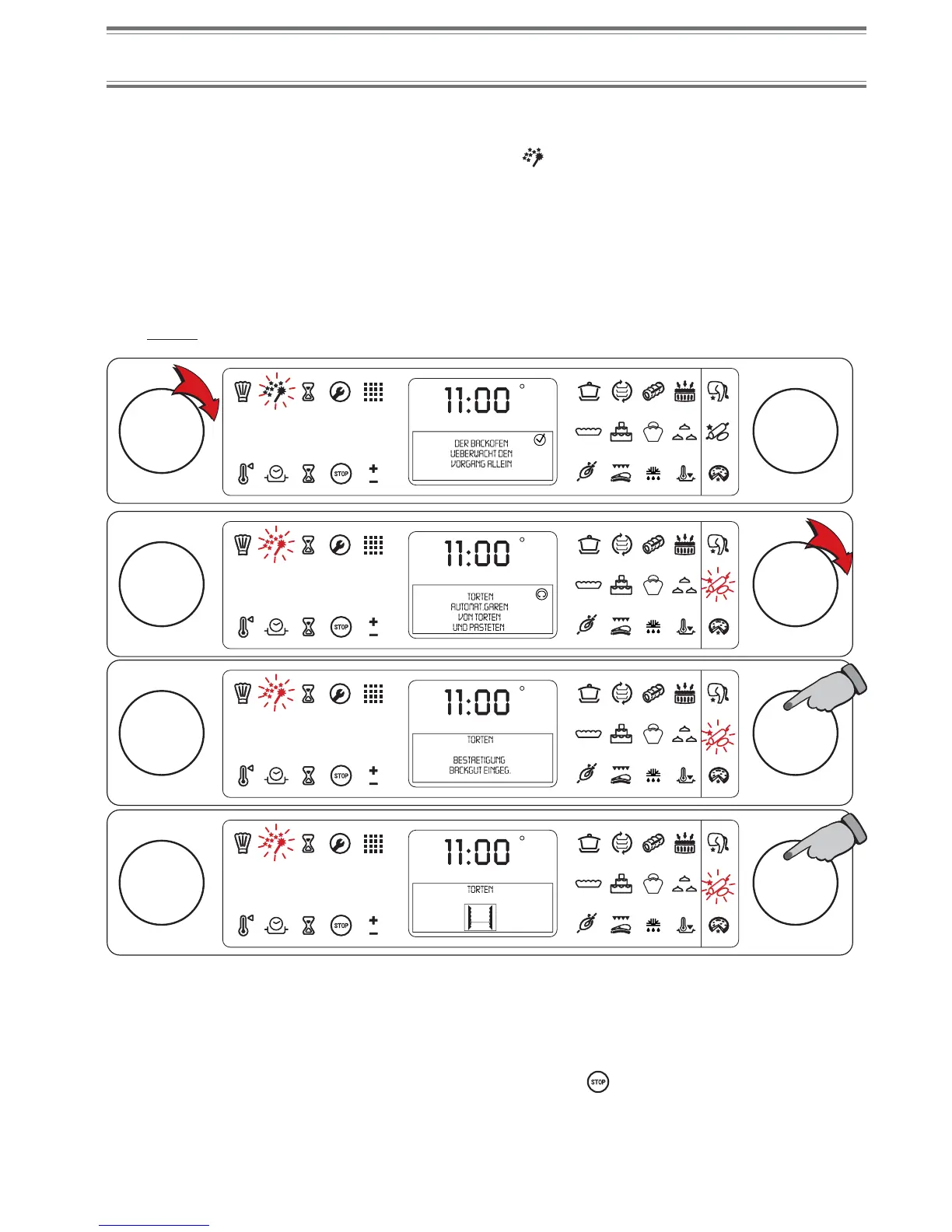 Für die Garvorgänge "Pizza" und "Pizzeria" (siehe Seite 13), erfolgt die Aufforderung zur Bestätigung erst nach