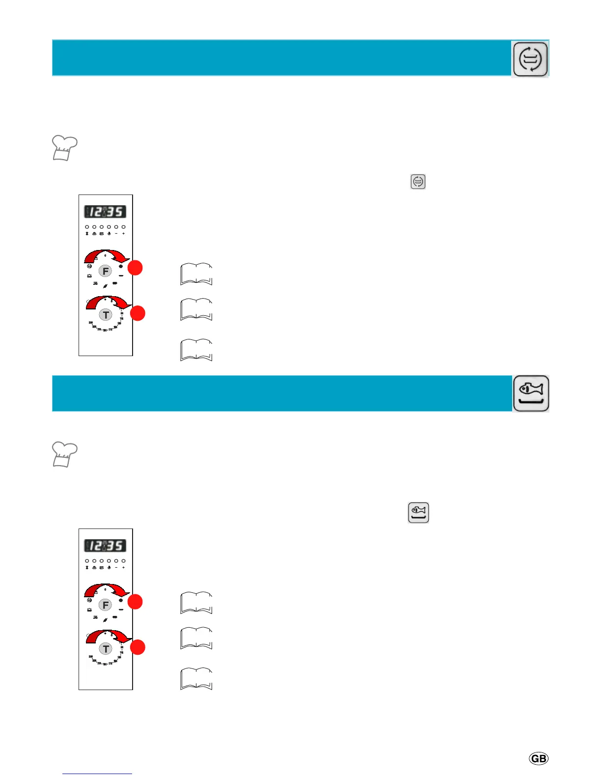 At the end of the cooking cycle, turn knobs «F» e «T» to «0» to switch