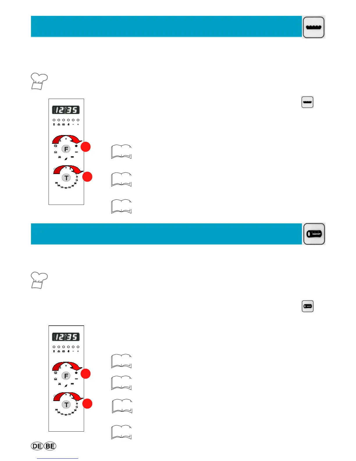 Wir empfehlen Ihnen, die Speisen in den bereits vorgeheizten Ofen einzuschieben (zum Vorheizen verwenden Sie die