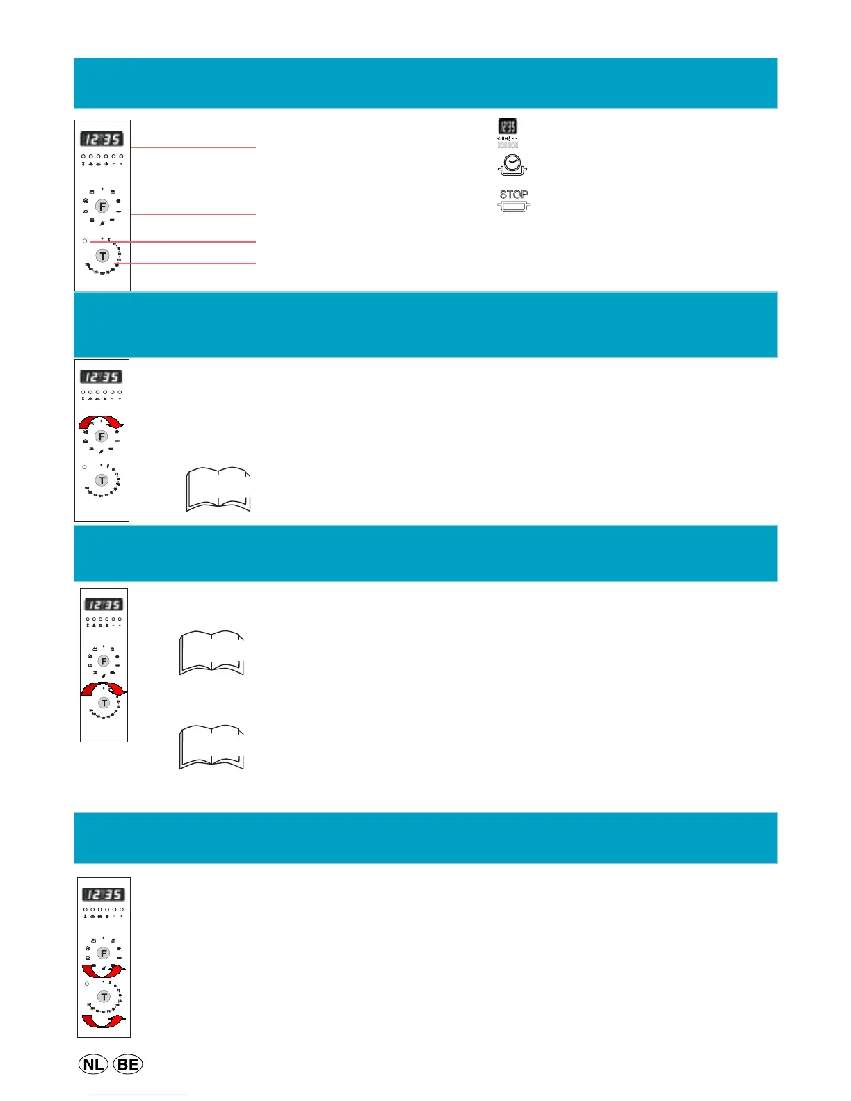 Zet de knoppen «F» en «T» terug op «0» om de oven uit te schakelen.