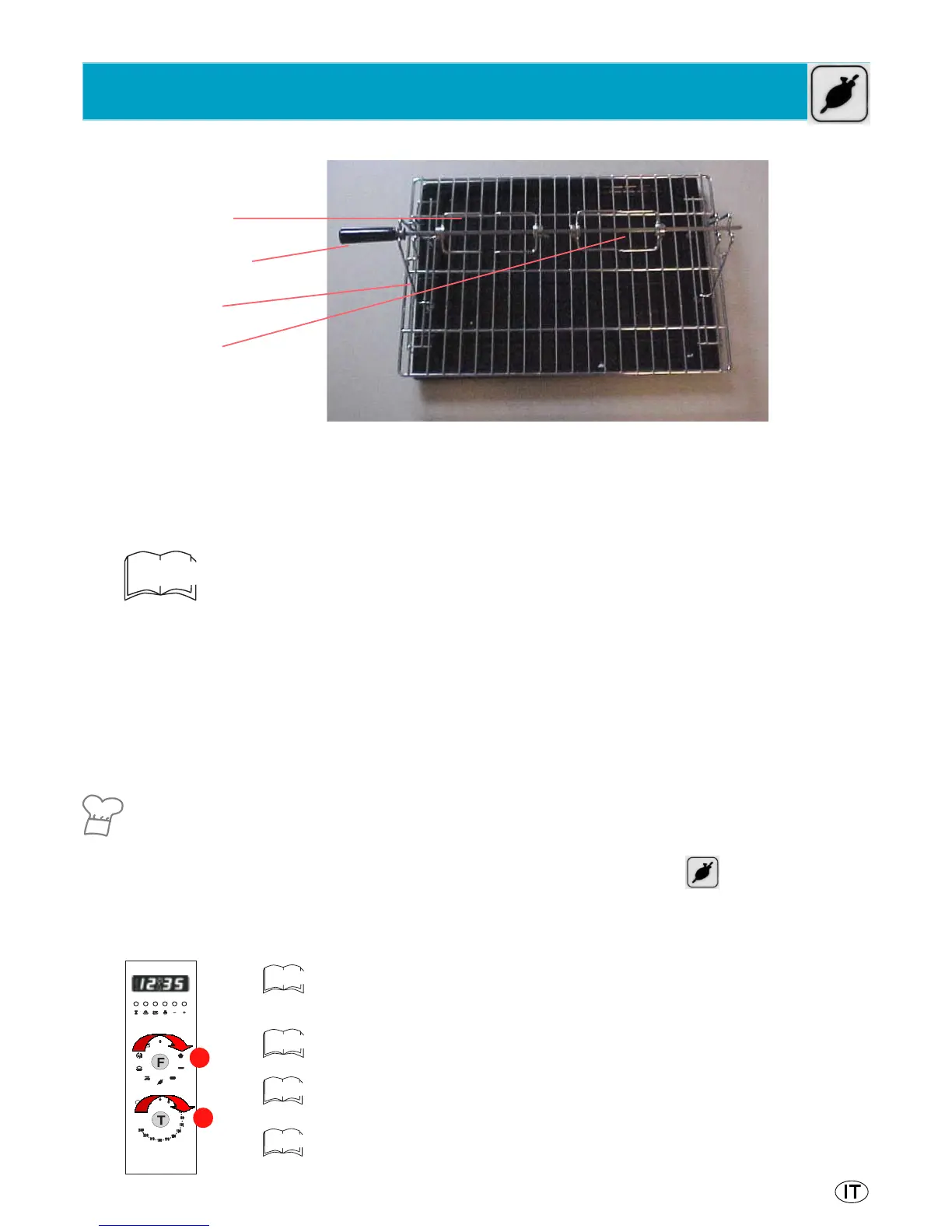 Questa funzione è particolarmente raccomandata per le cotture al girarrosto a porta chiusa.I pezzi da arrostire girano