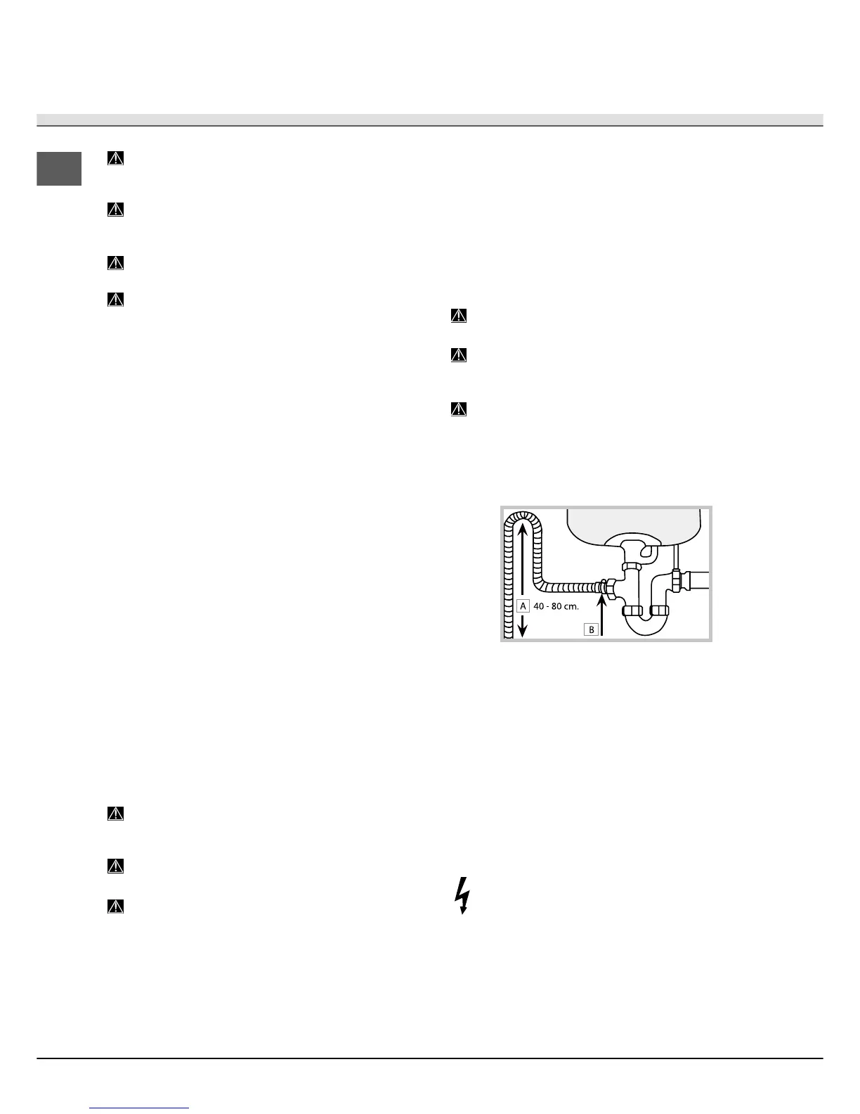 Le tuyau d'évacuation doit être placé entre 40 et 80 cm au-dessus