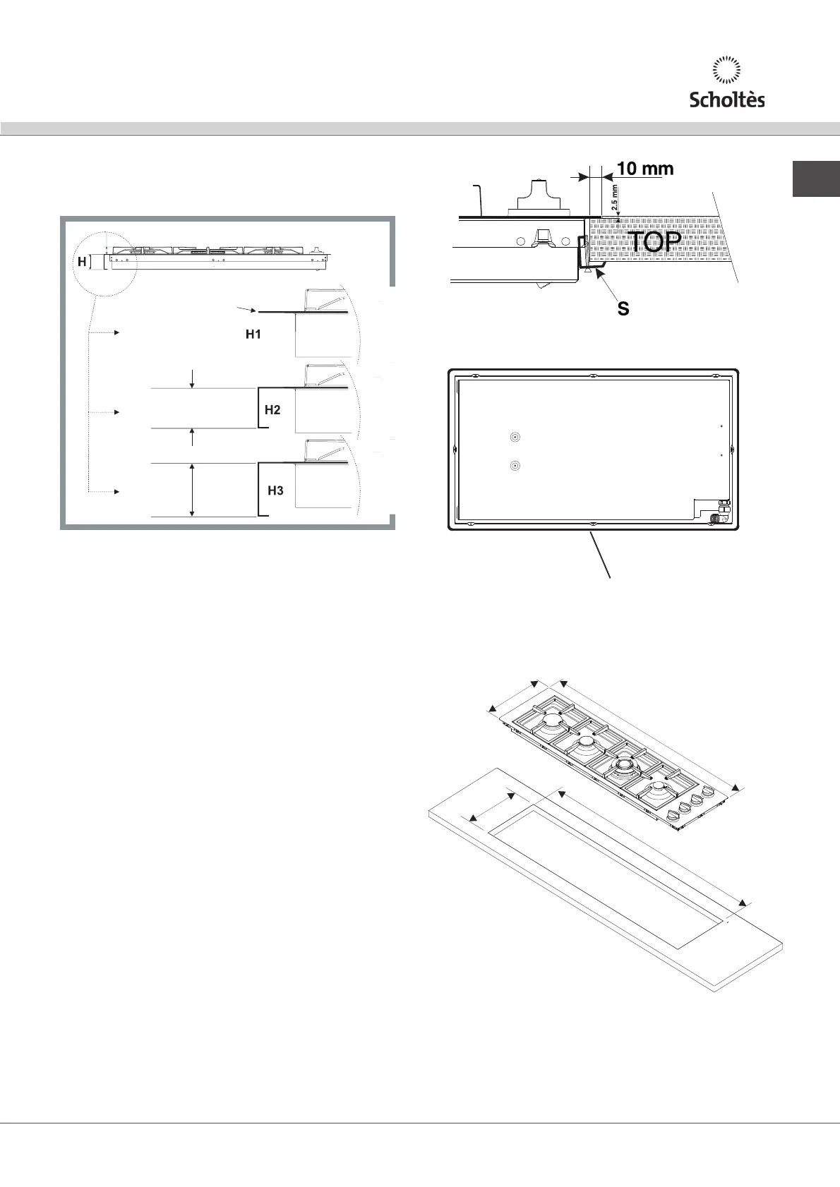 garantire 1 cm di appoggio del piano sul top ; per