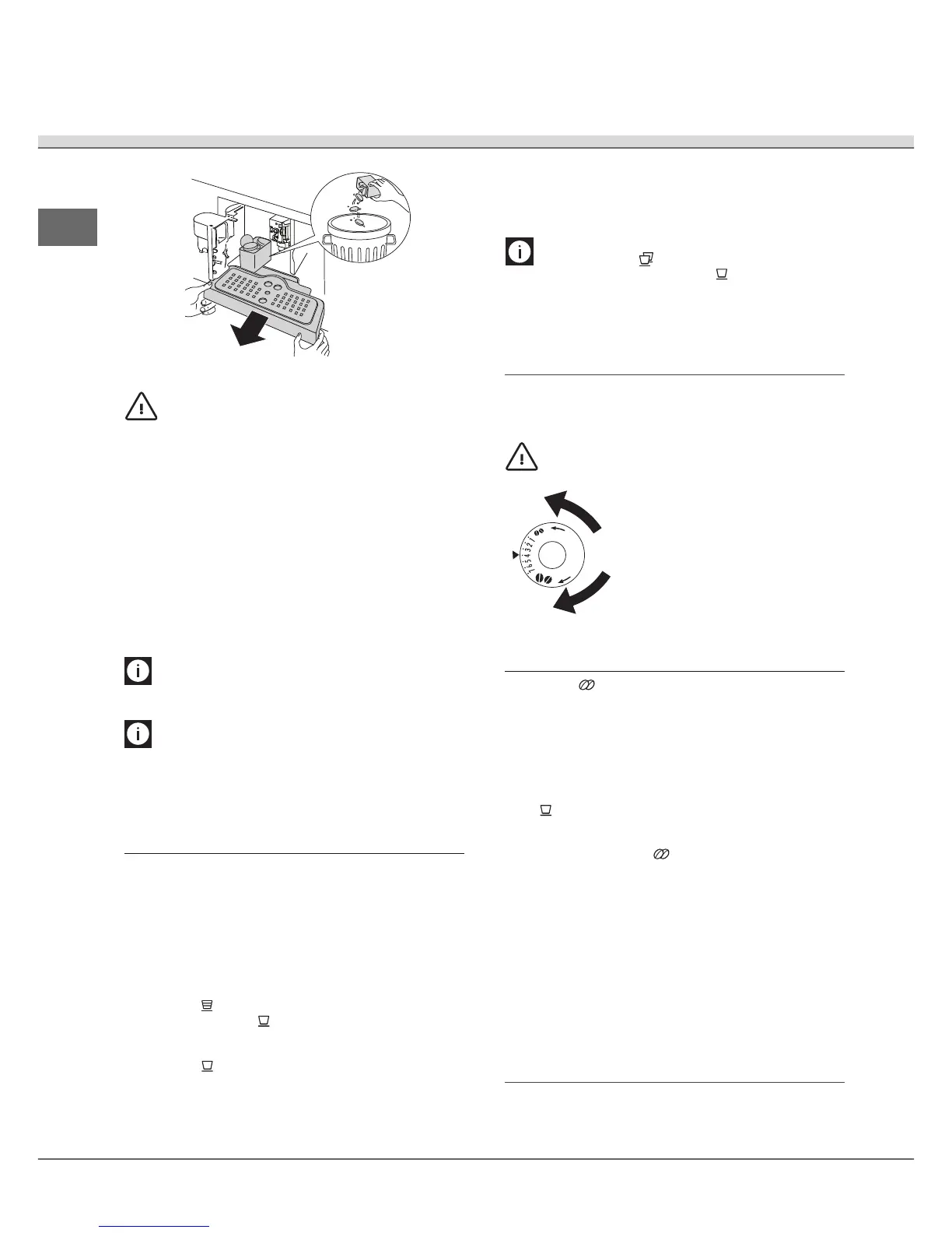 NOTE 8: Never extract the water tank while the machine is delivering