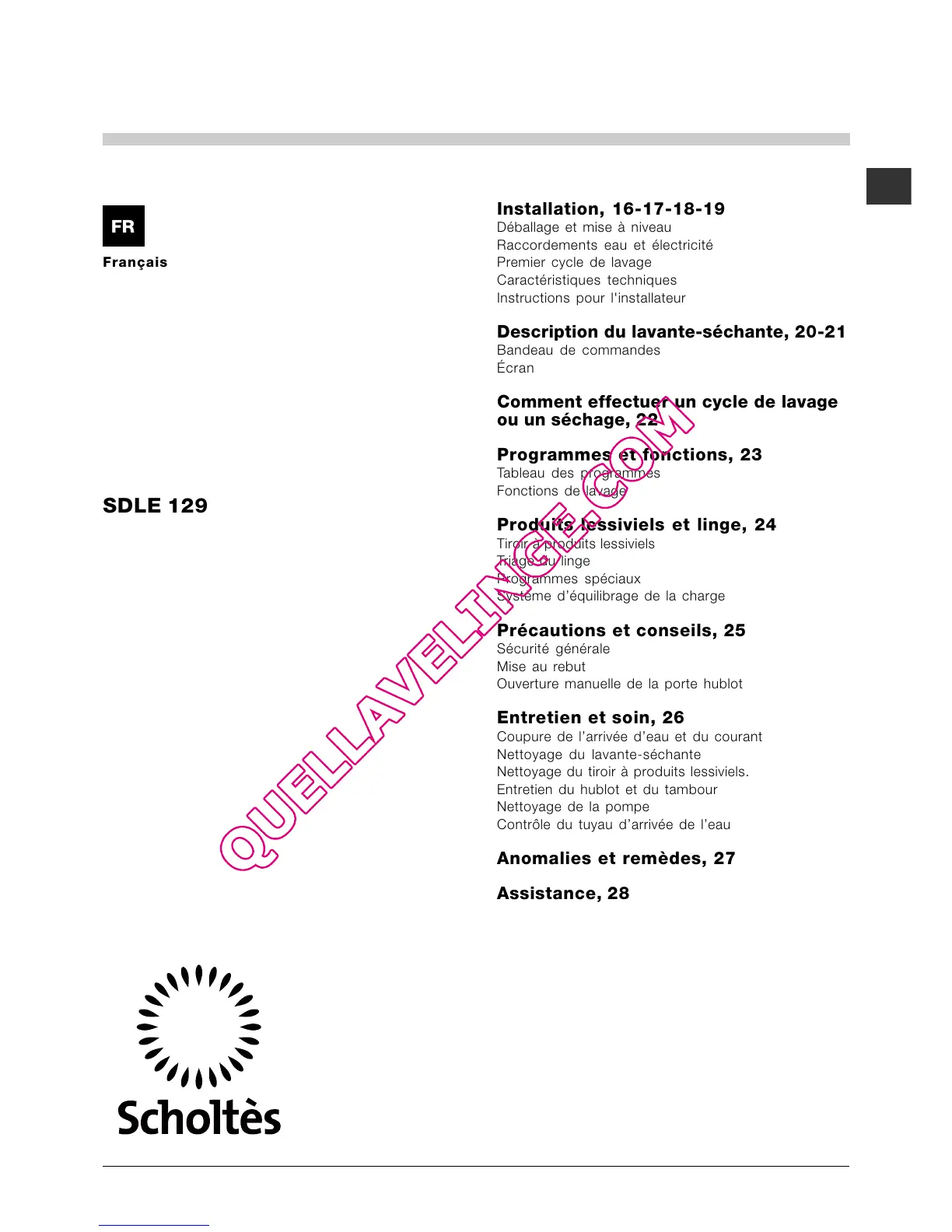 Description du lavante-séchante, 20-21