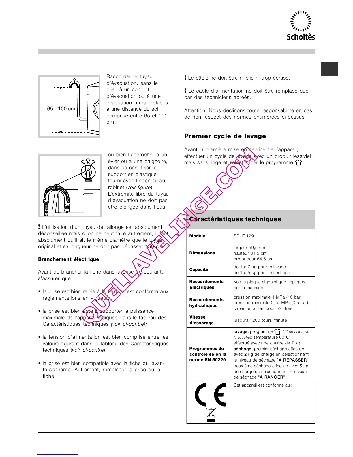 Raccordement du tuyau de vidange
