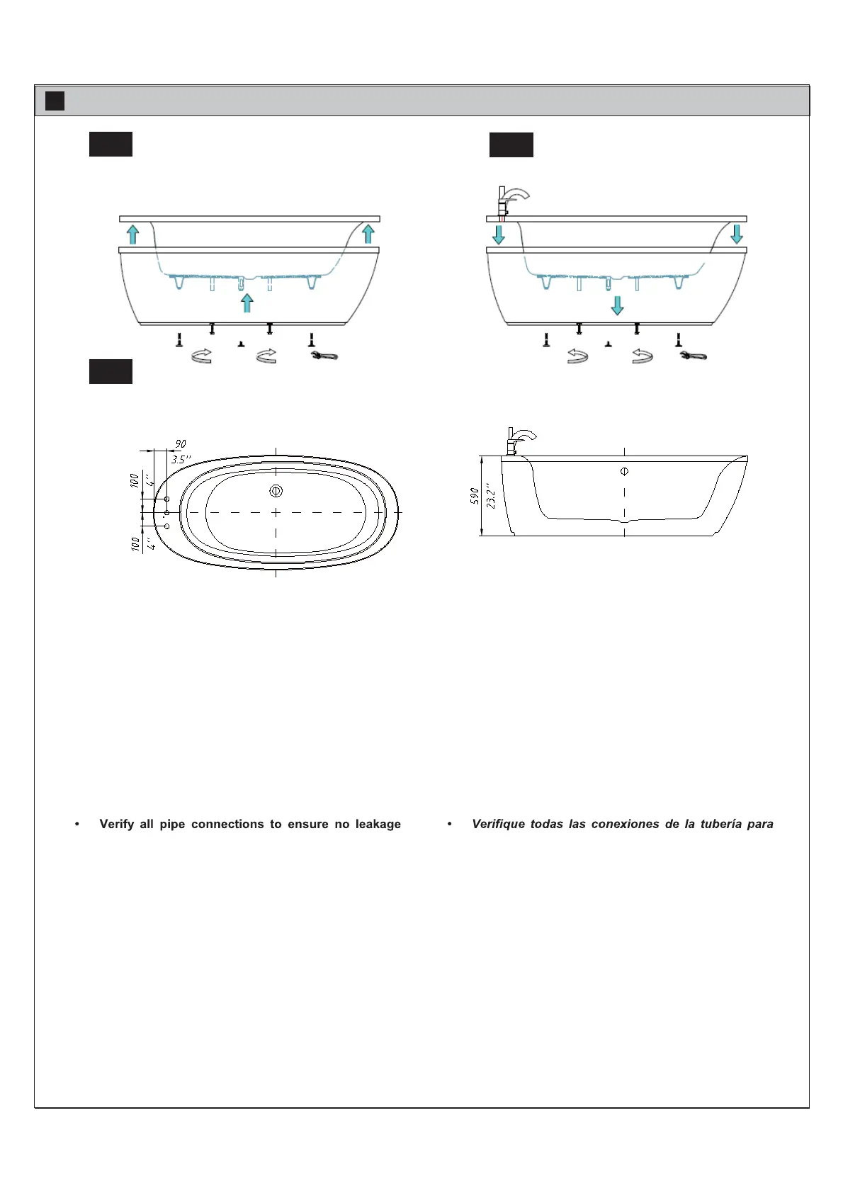 la bañera usando una llave ajustable. Luego saque