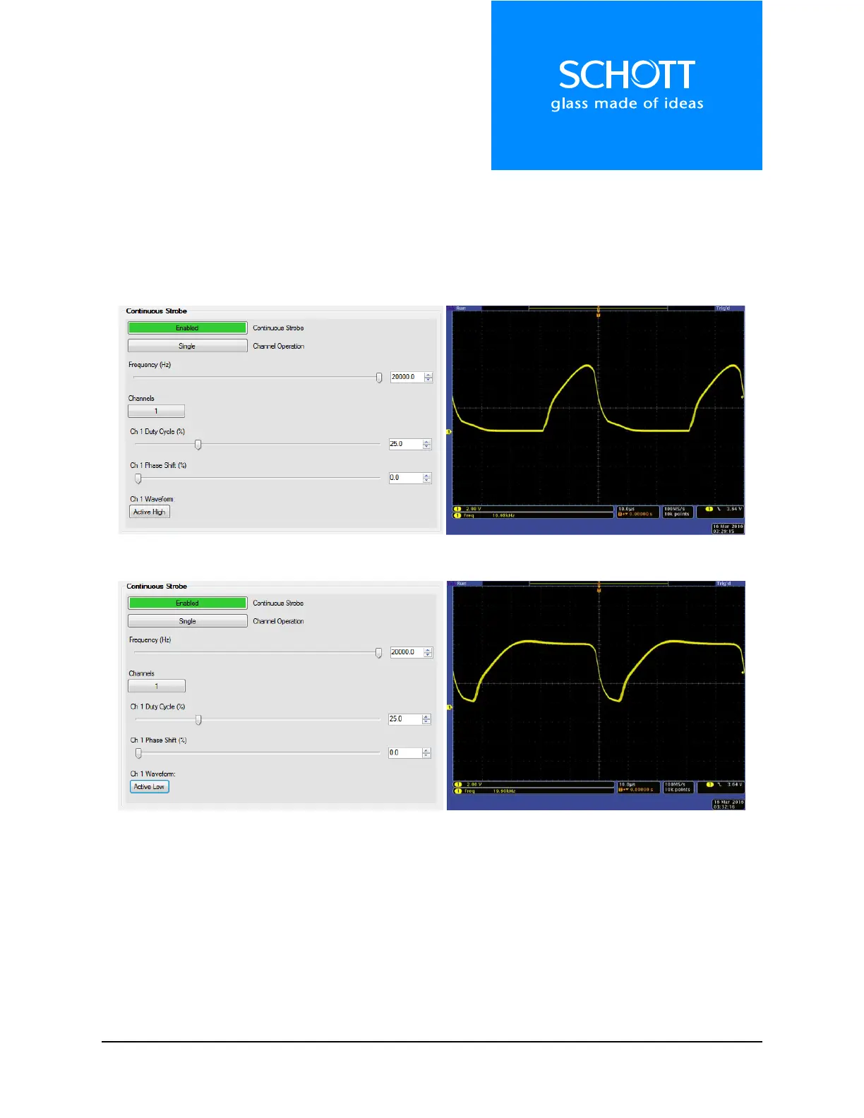 25% of the waveform. In Figure 12 below, the Waveform is set to “Active Low”, the LED is OFF for only