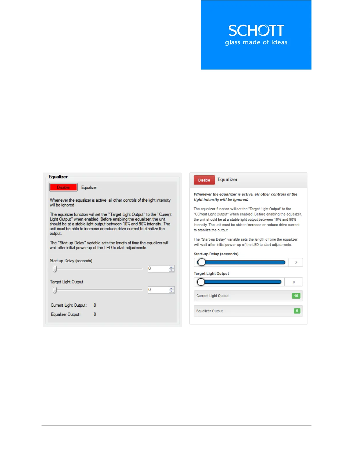 light output, while the CLO value is used by the internal control loop of the Equalizer.