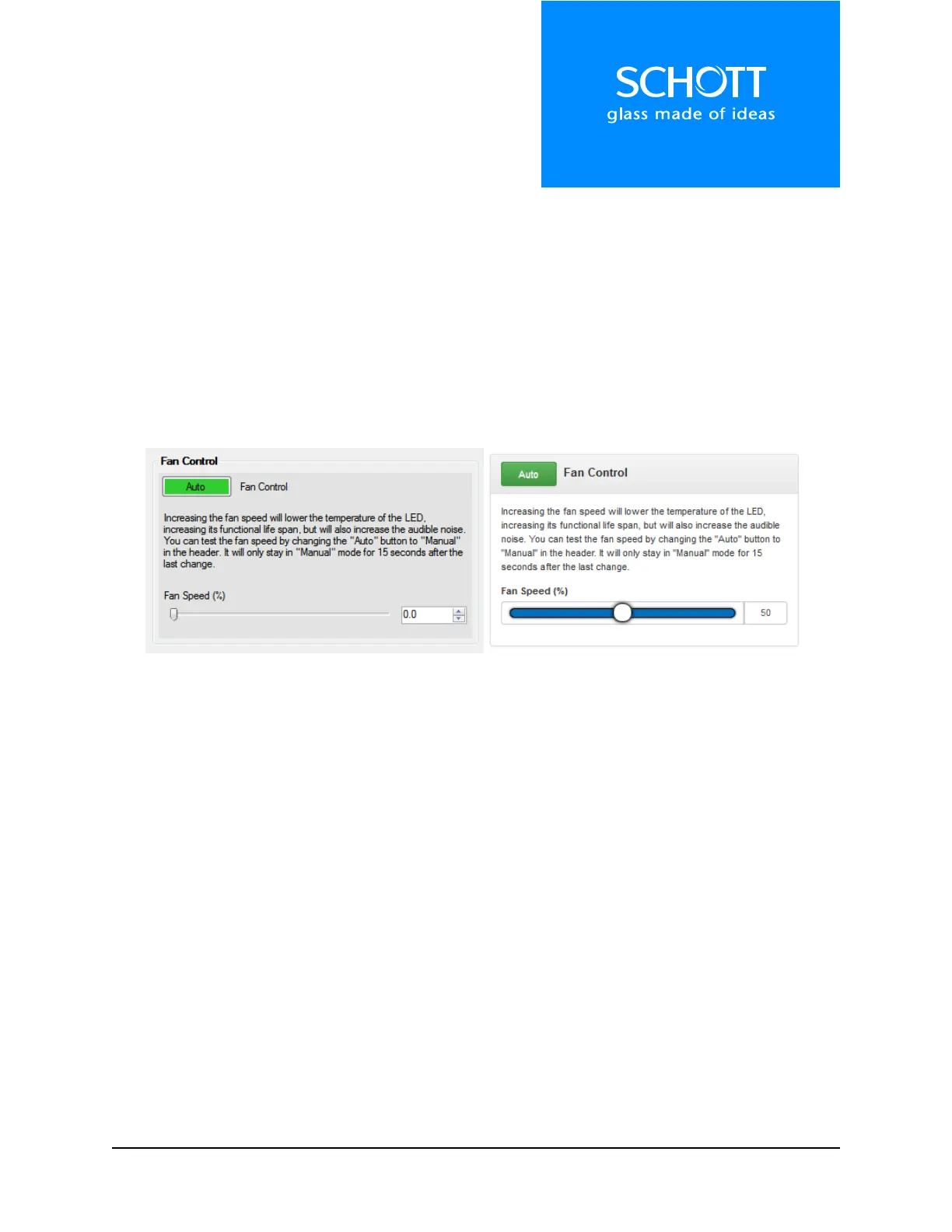 The status windows can be used to monitor the LED temperature to find the optimal tradeoff of fan