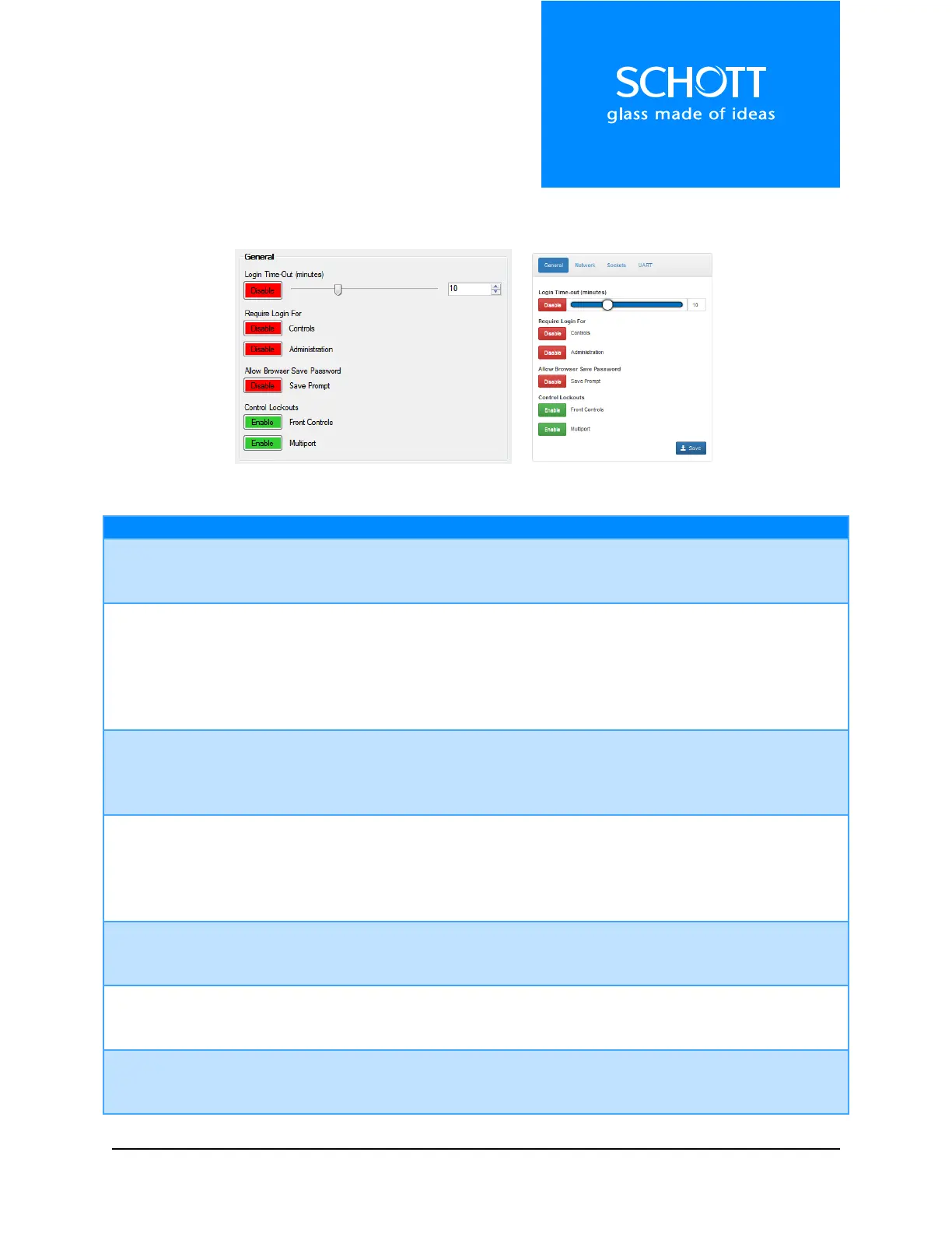 When enabled, the system will require a login of USER level or higher to use