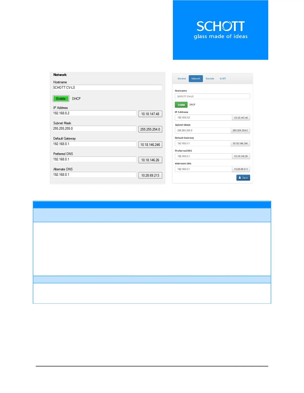 Figure 20: Network (Left: Dashboard, Right: Web Interface)