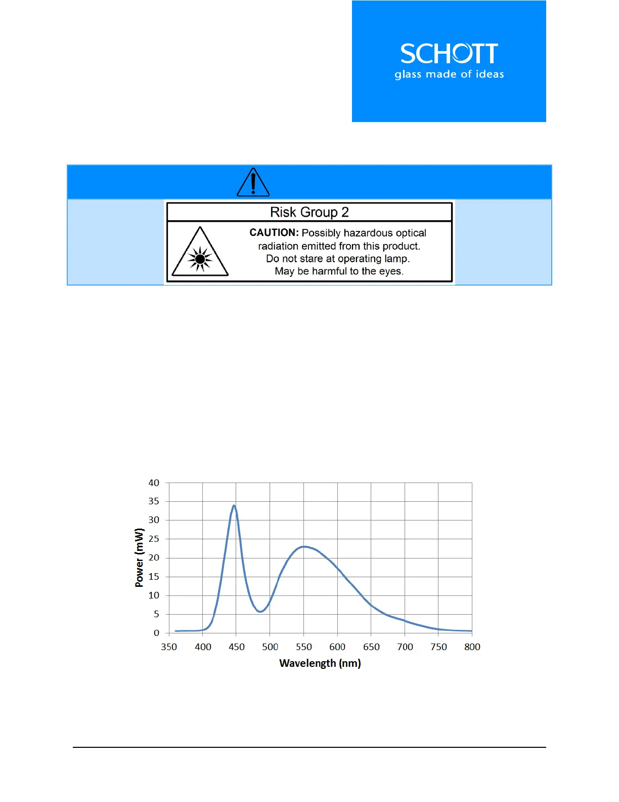 Light output is measured using a SCHOTT fiber optic light guide, Ø 13 mm active, length 1 m (A08051.40